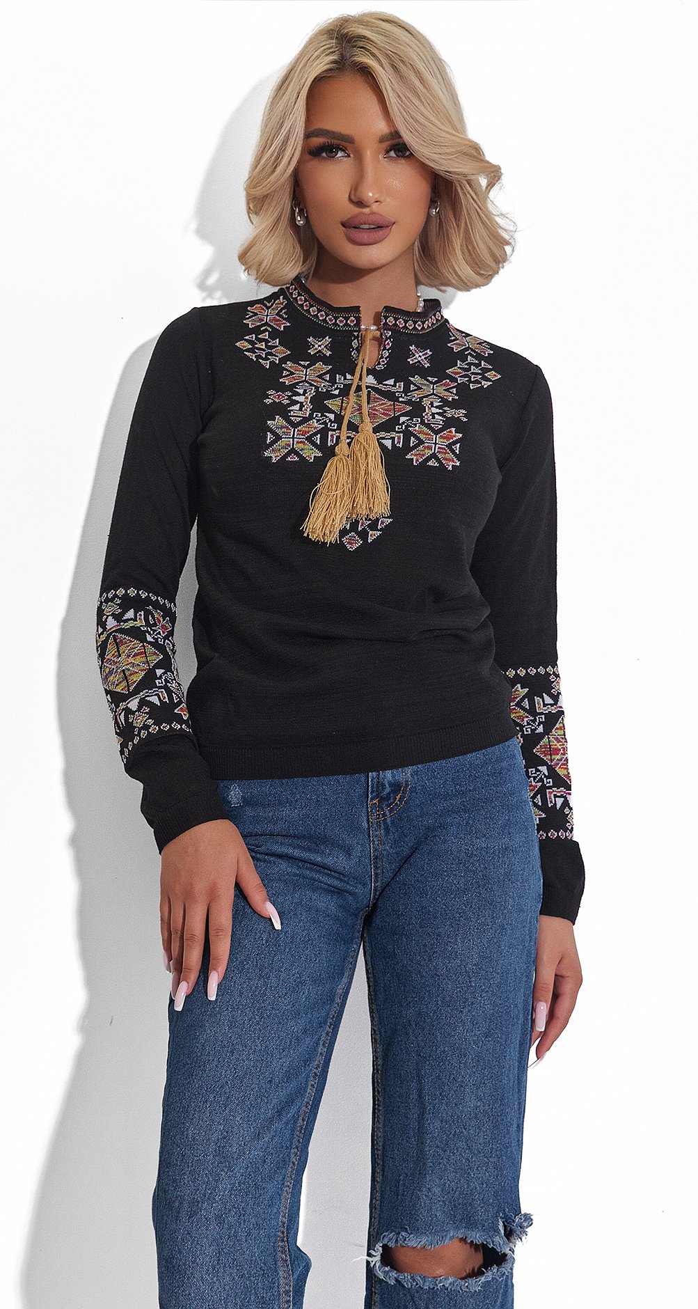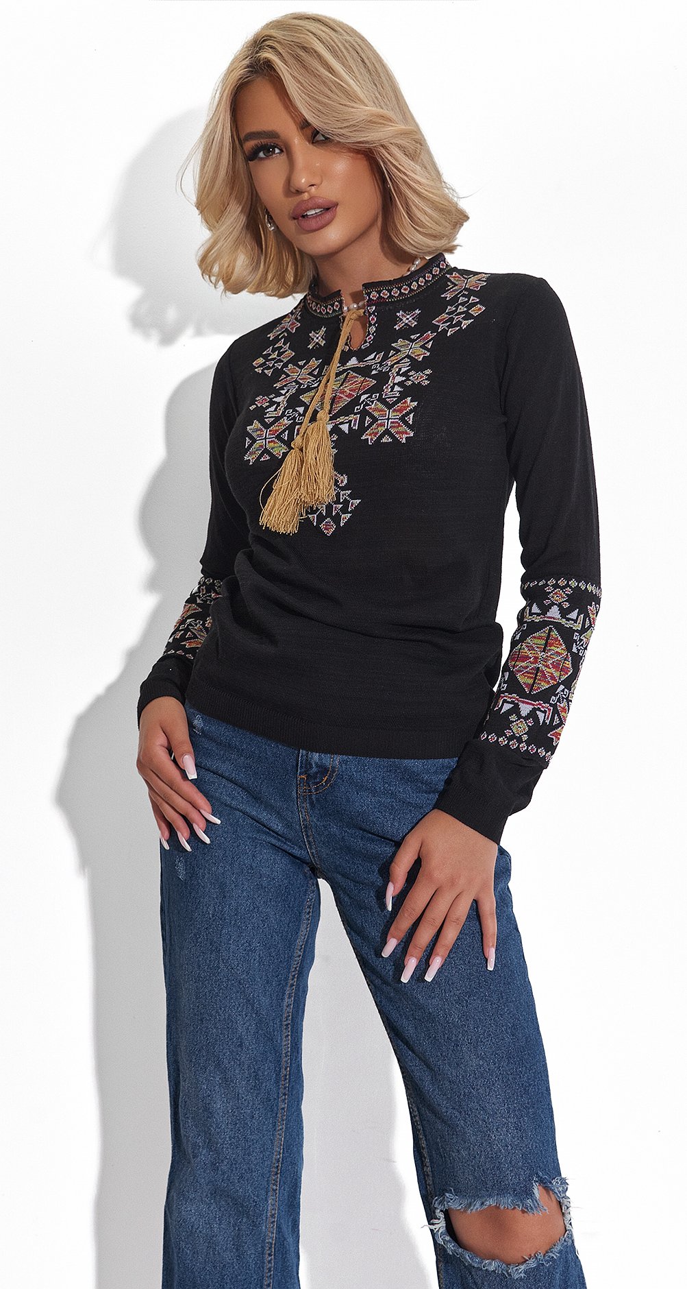 В'язана бавовняна блузка вишиванка