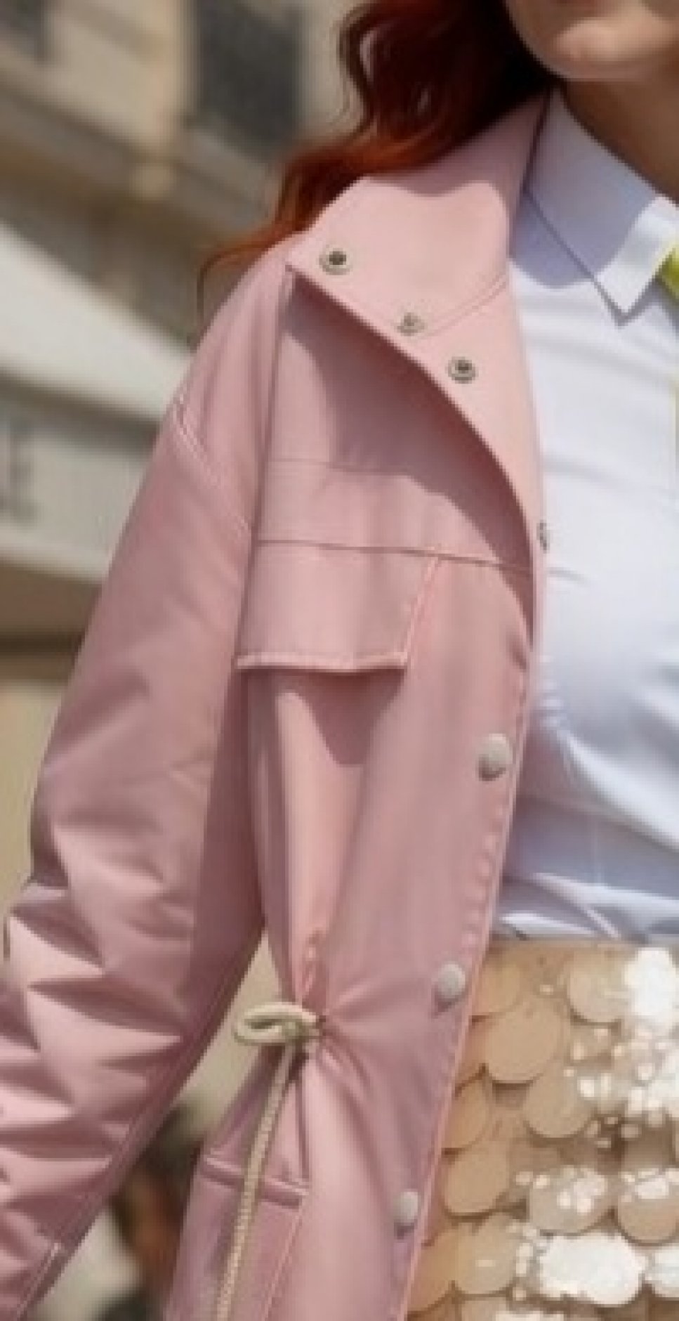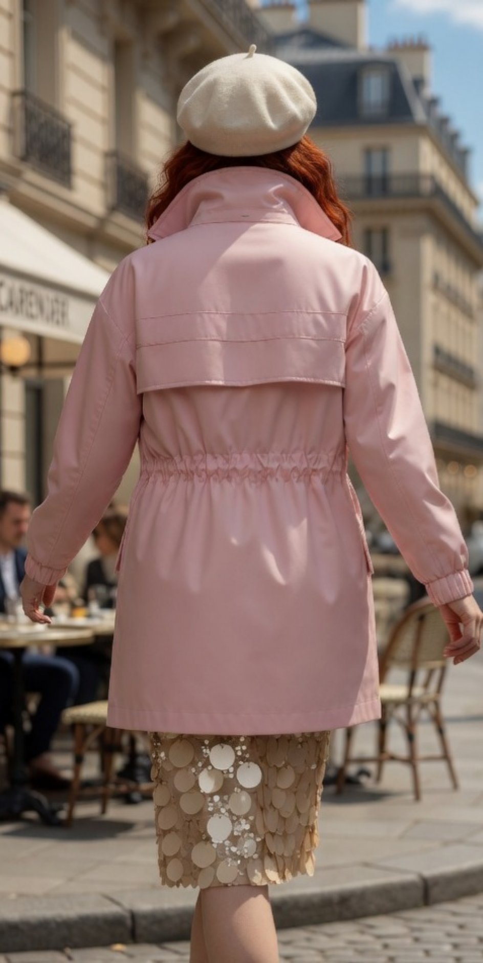 Ця ветровка в ніжно-рожевому відтінку - ідеальне втілення стилю "soft utility". Вона поєднує в собі практичність верхнього одягу та делікатну жіночність, стаючи незамінною річчю для мінливої весняної погоди.