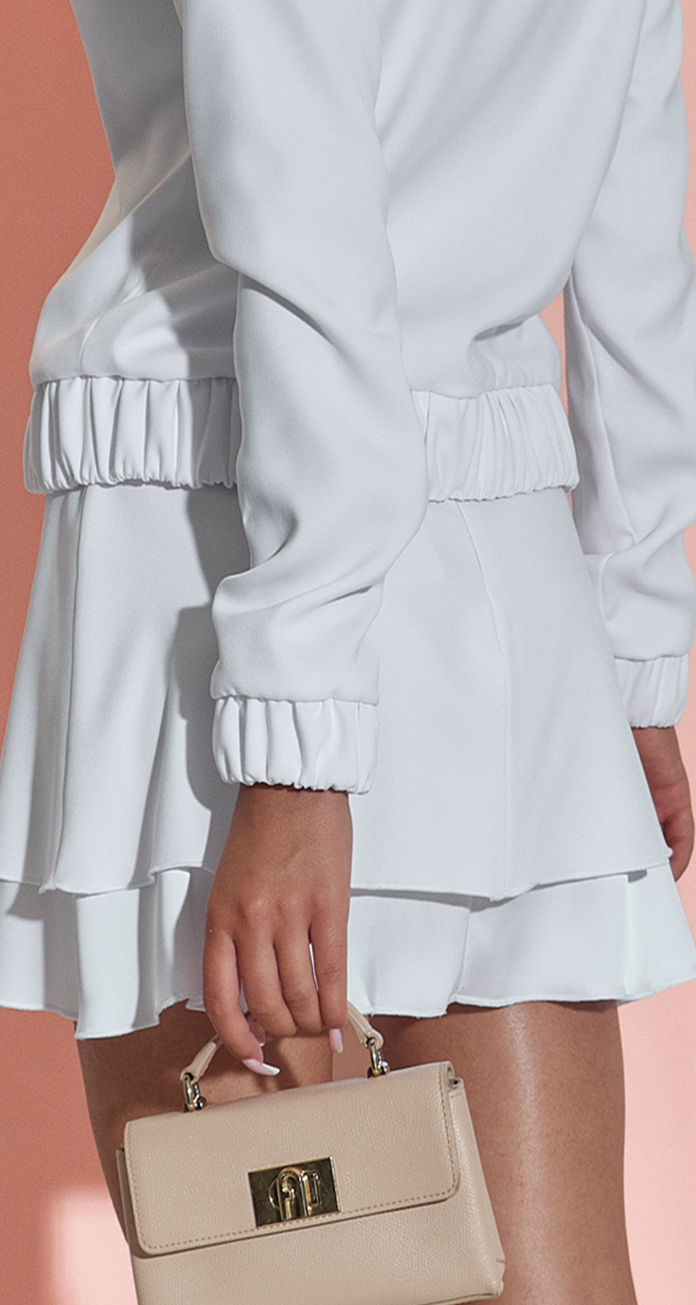Створений для тих, хто цінує розкіш та бездоганний стиль, цей комплект складається з укороченого жакета-бомбера та стильної двошарової міні-спідниці. Ми використовували лише преміальні матеріали, щоб забезпечити вам максимальний комфорт та впевненість.