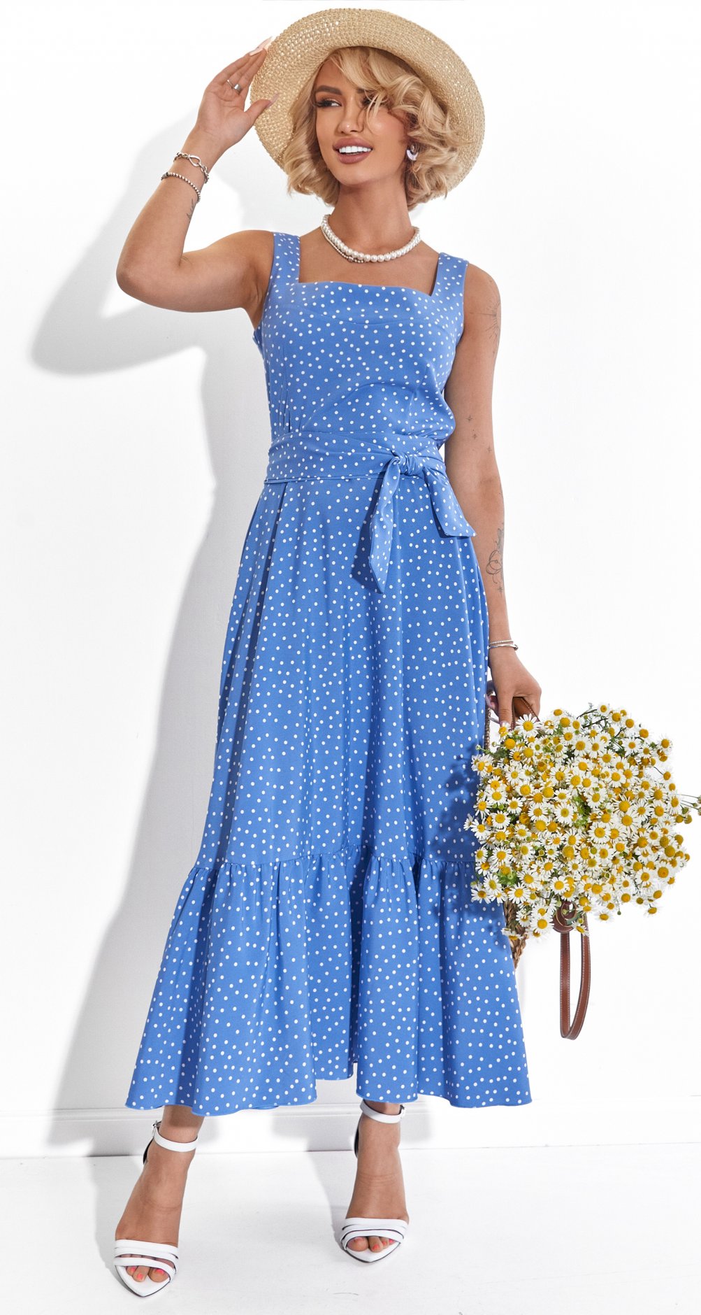 Абсолютний хіт літа! ???? Наш блакитний сарафан у дрібний горошок з найлегшої тканини – це втілення жіночності та свободи. Ідеальний для пляжу, міста, відпустки! Відчуй себе зіркою щодня.