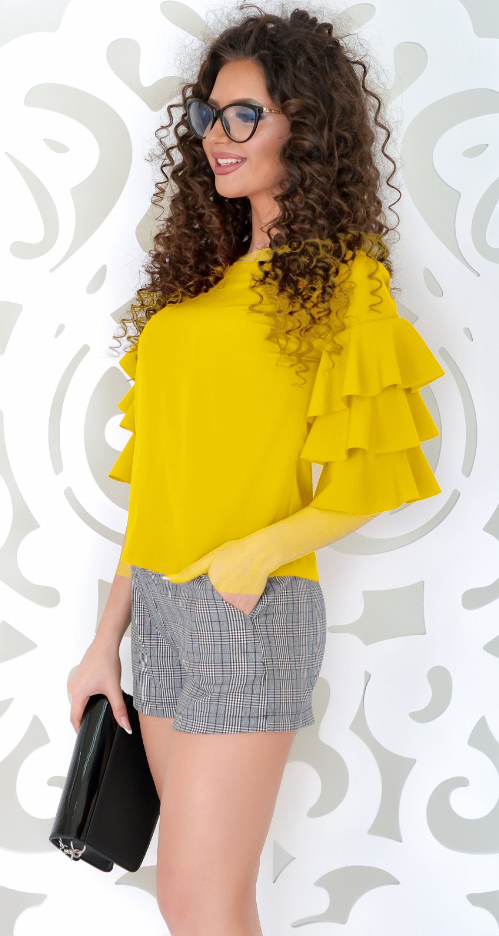 Легка блузка вільного крою з незвичайними багатошаровими рукавами.