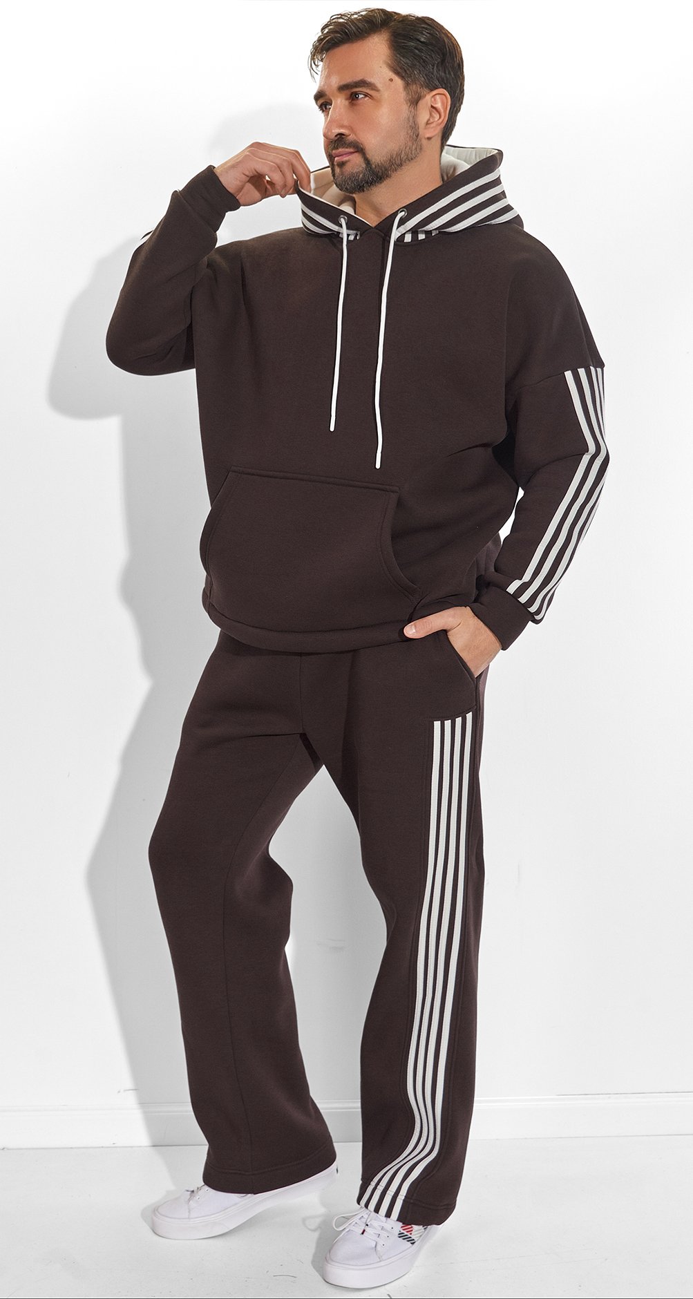 Стильний Акцент: Контрастні лампаси (смуги) на рукавах та штанах додають графічності та роблять силует чіткішим. Глибокий каптур та накладна кишеня-кенгуру — класика, доведена до досконалості.