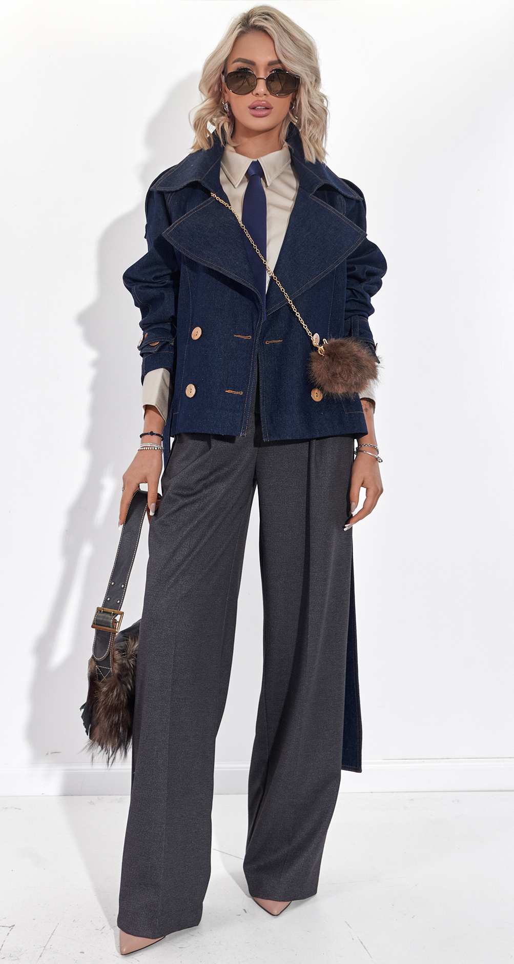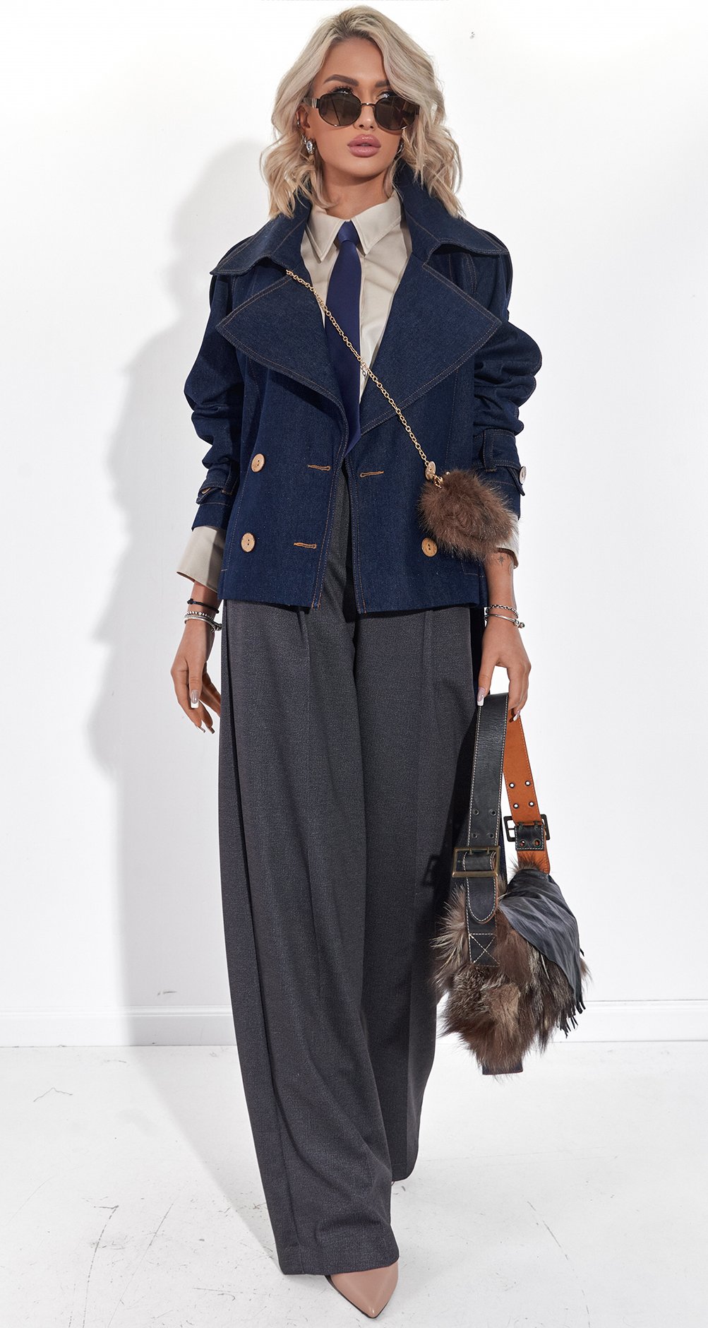 Універсальність 24/7: Поєднуйте її з діловими брюками та краваткою для сміливого офісного образу (як на фото), або накиньте поверх шовкової сукні для вечірнього виходу.