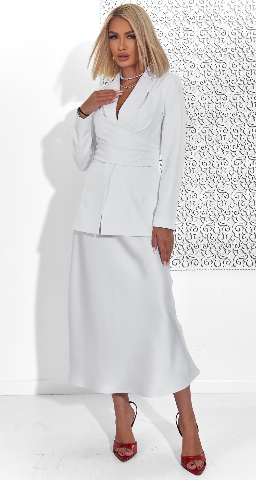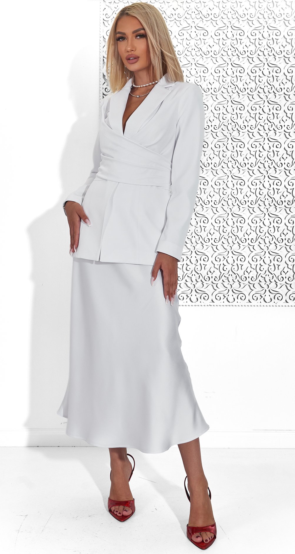 Зустрічайте блейзер, який стане ключовим елементом вашого гардеробу. Цей білий піджак - не просто класика, це мистецтво крою, створене для того, щоб підкреслити вашу жіночність і почуття стилю.