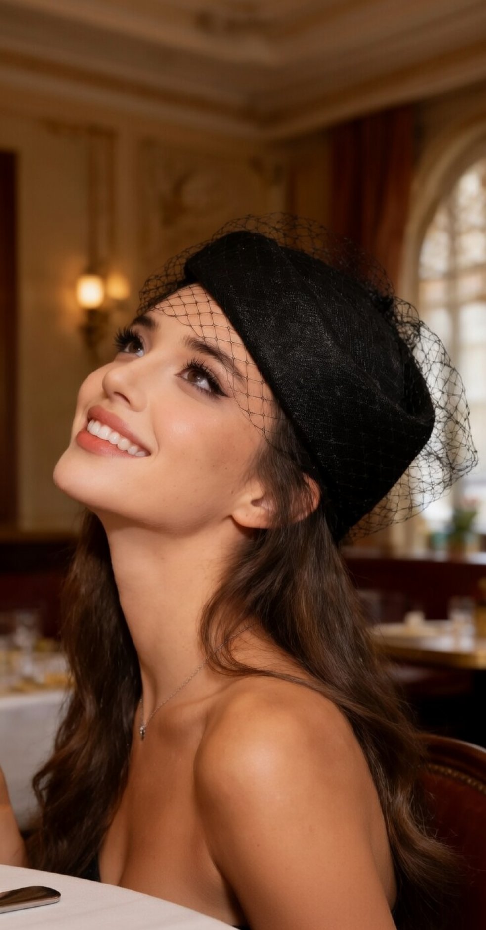 Elegant mesh: The veil adds a mysterious look to the look, and a touch of retro chic to the image, which is again at the peak of fashion today.