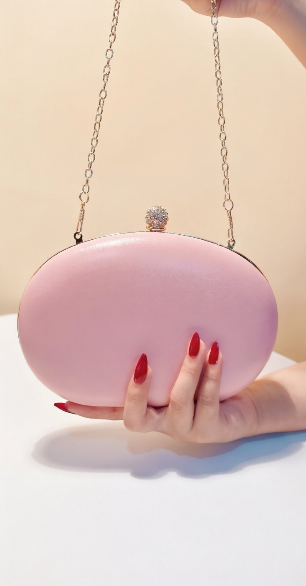 Add soft radiance and tenderness to your image. Our new oval handbag in the perfect shade of pink is an accessory that combines flawless form with the noble shine of gold.