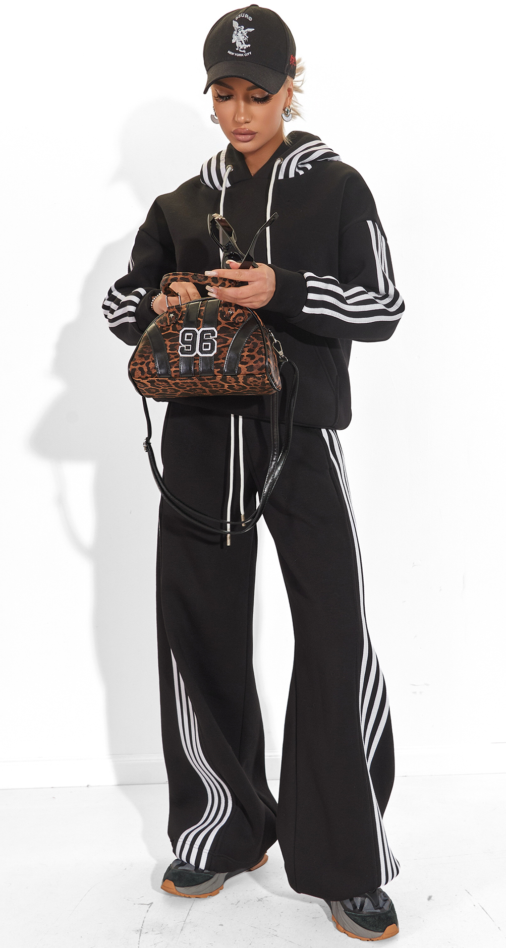 Versatility of Style: It is ideally combined with oversized sweaters (as in the photo), classic coats, and, of course, with sports suits.