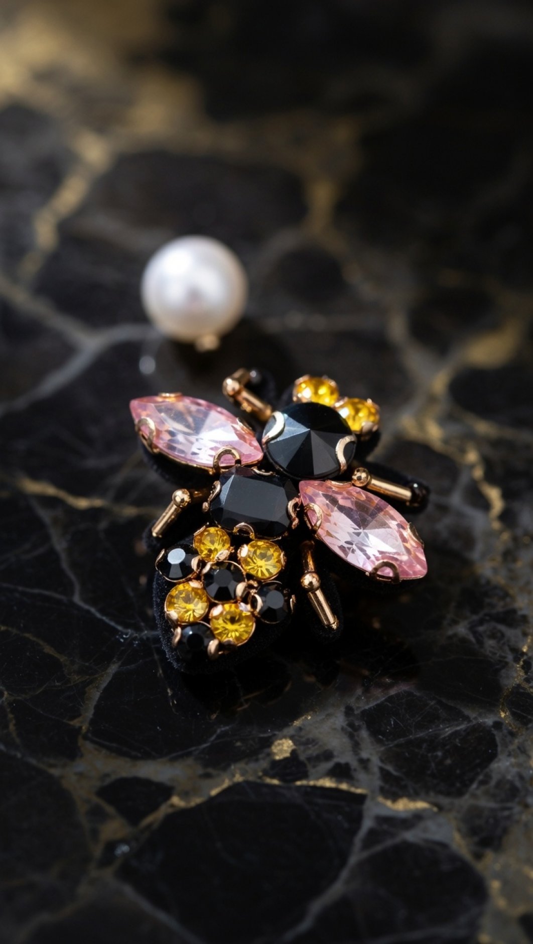 ​Add grace and individuality to the image. Our new brooch, encrusted with shimmering stones, is a jewelry accent that attracts eyes.