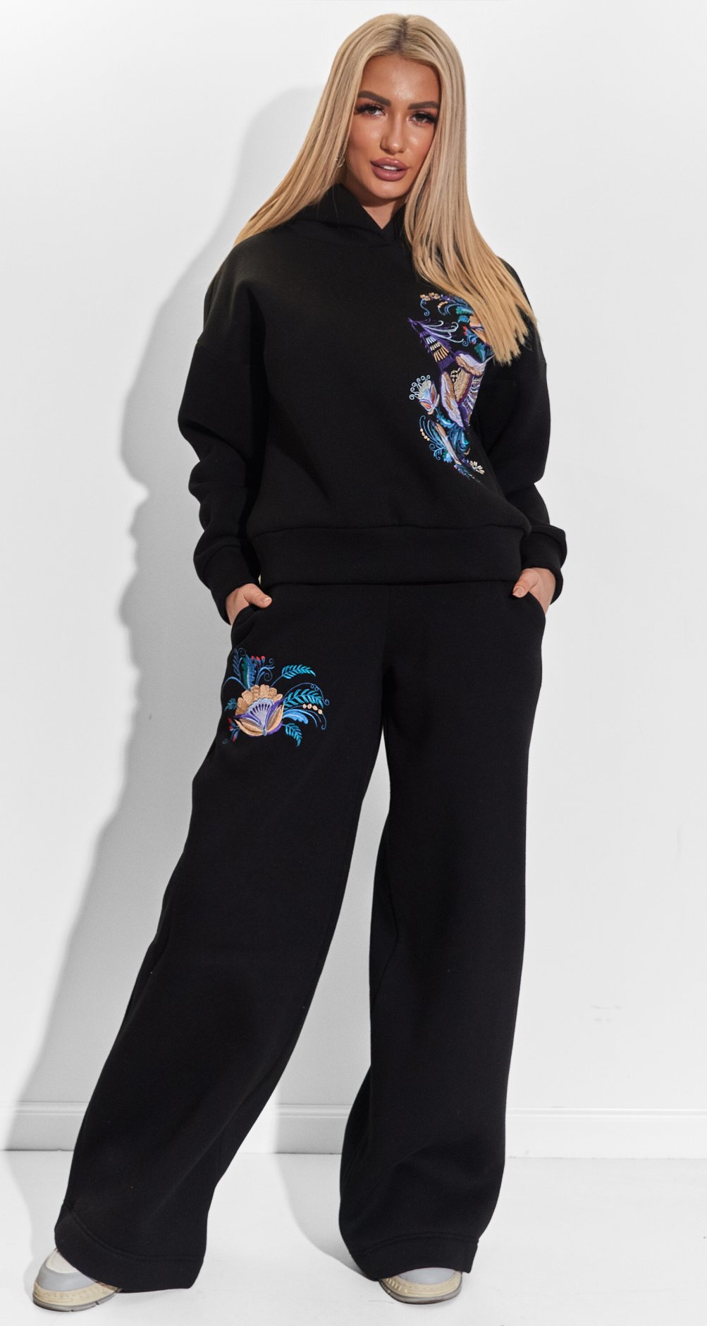 This suit is the embodiment of comfort and style. Loose palazzo trousers do not restrict movement, giving a feeling of lightness and ease, and exquisite embroidery gives the image a unique charm and individuality.