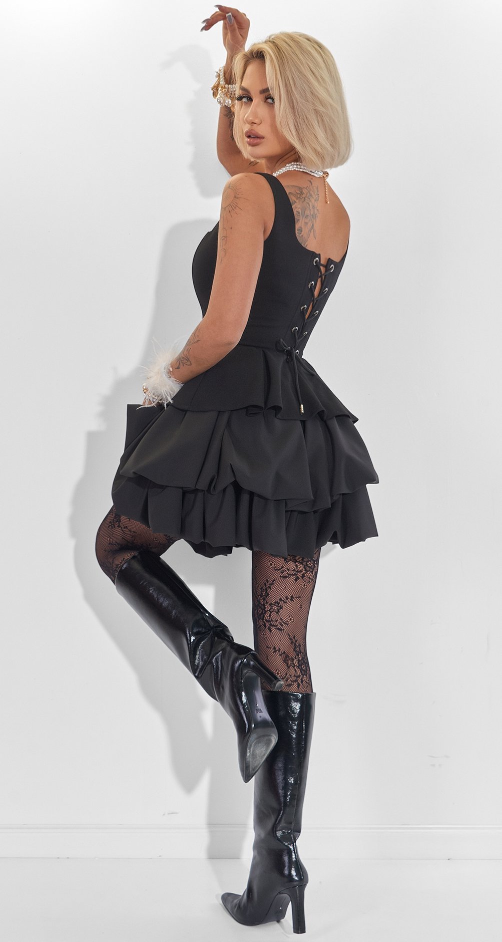 This kit is an ideal combination of graphics and lightness. The "double balloon" skirt is at the peak of trends now, and the corset with a peplum makes the figure sharp. Together, they create a very modern, doll-like and at the same time daring image.