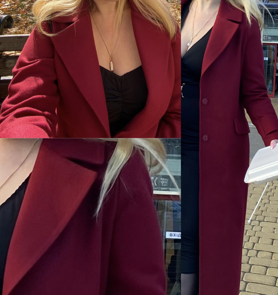 High-quality fabric with cashmere gives warmth and softness, making the coat pleasant to the touch.