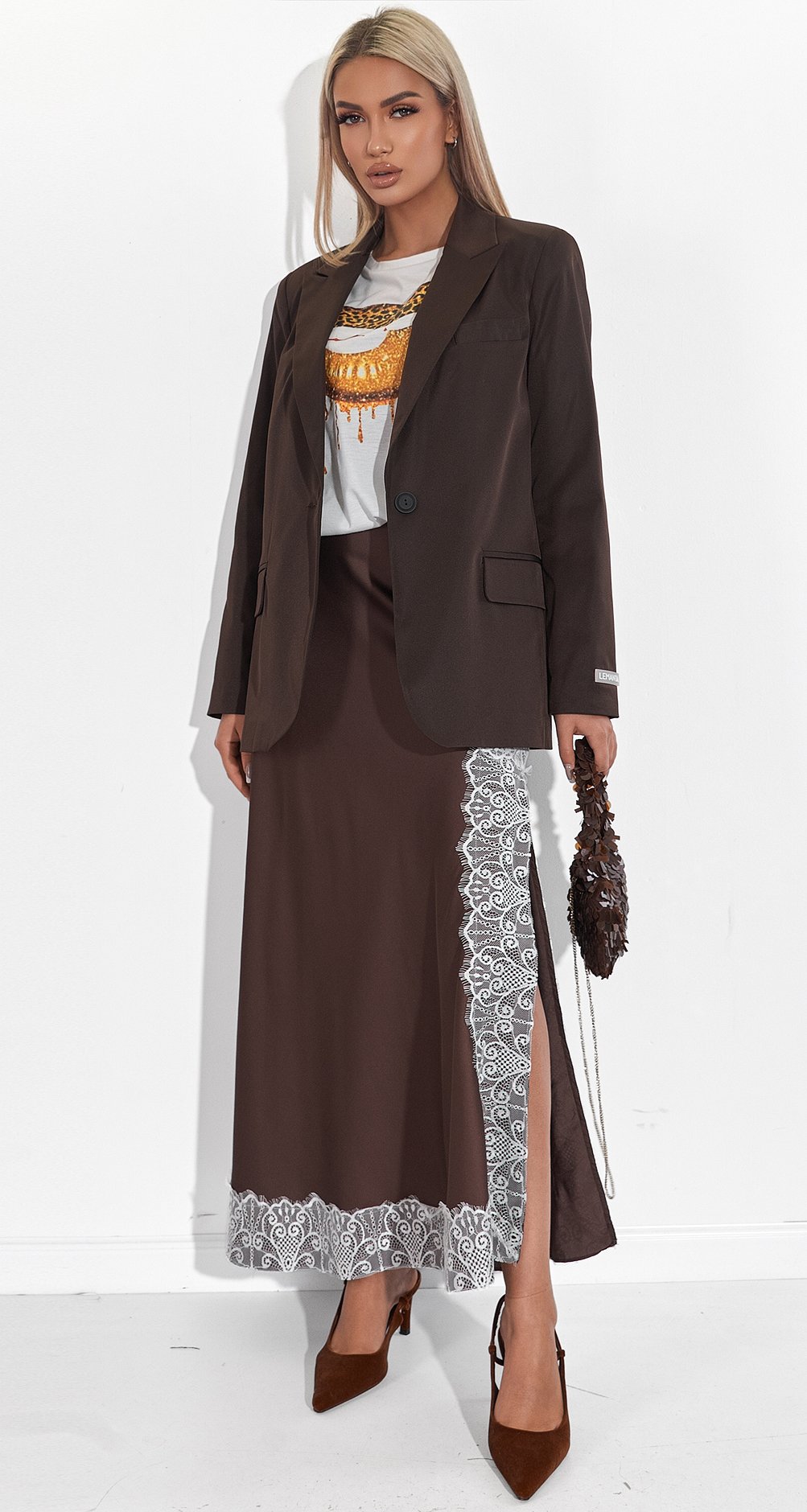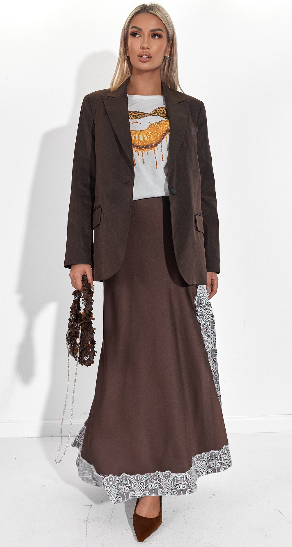 The Hit of the Season! Meet the perfect combination of classic and trendy pieces – our cozy brown blazer! This "Fashionable Chocolate" shade is an absolute must-have that easily integrates into any wardrobe.