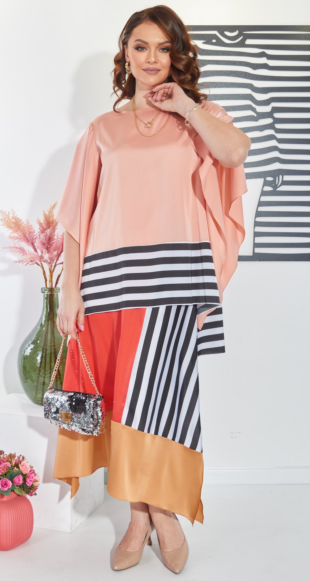 A light and airy silk suit that combines elegance and current fashion trends. The free cut makes it versatile and comfortable, and the unusual combination of colors and prints adds individuality.