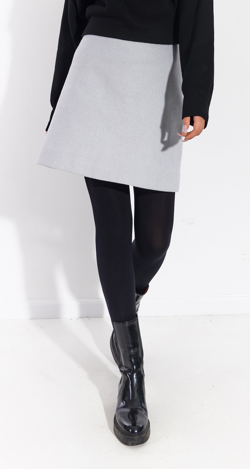 And the silhouette, on the belt without an elastic band, the fastener is a hidden zipper.