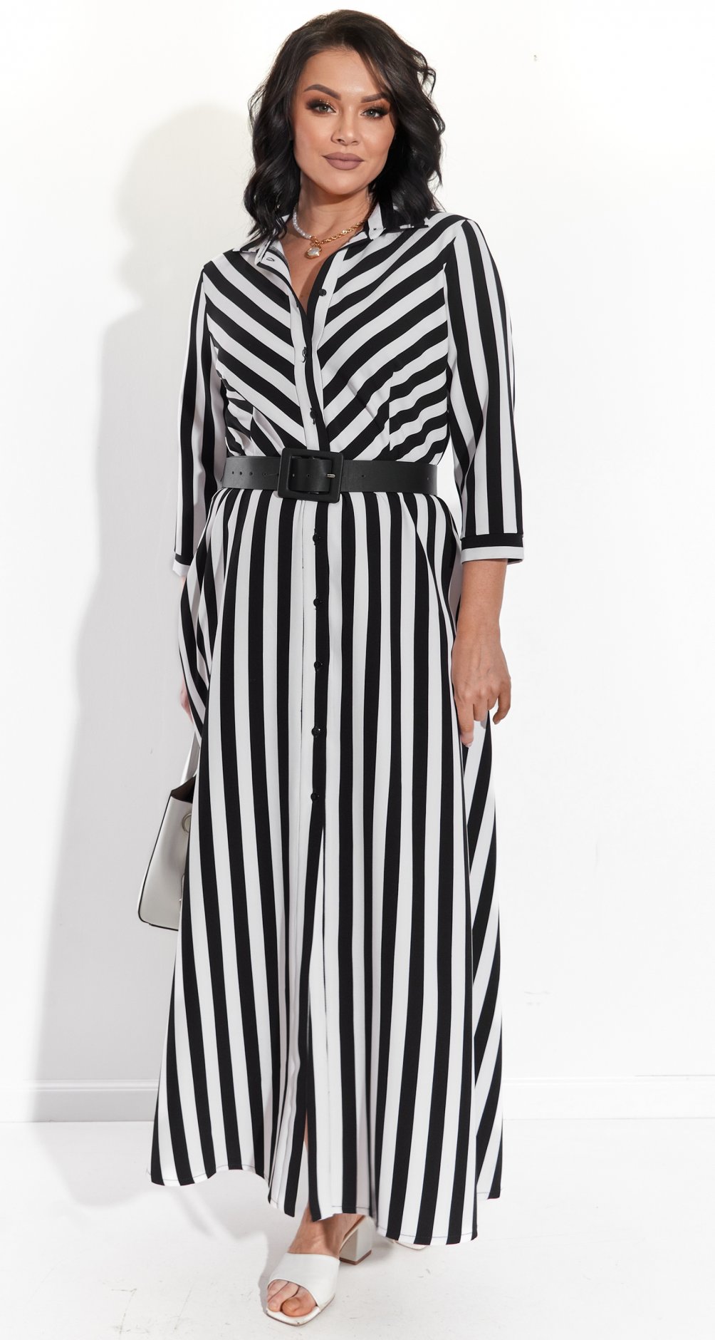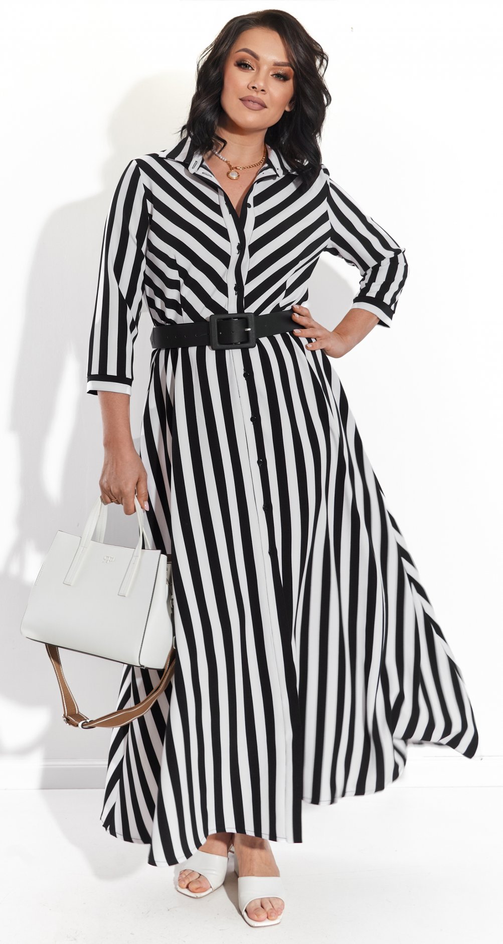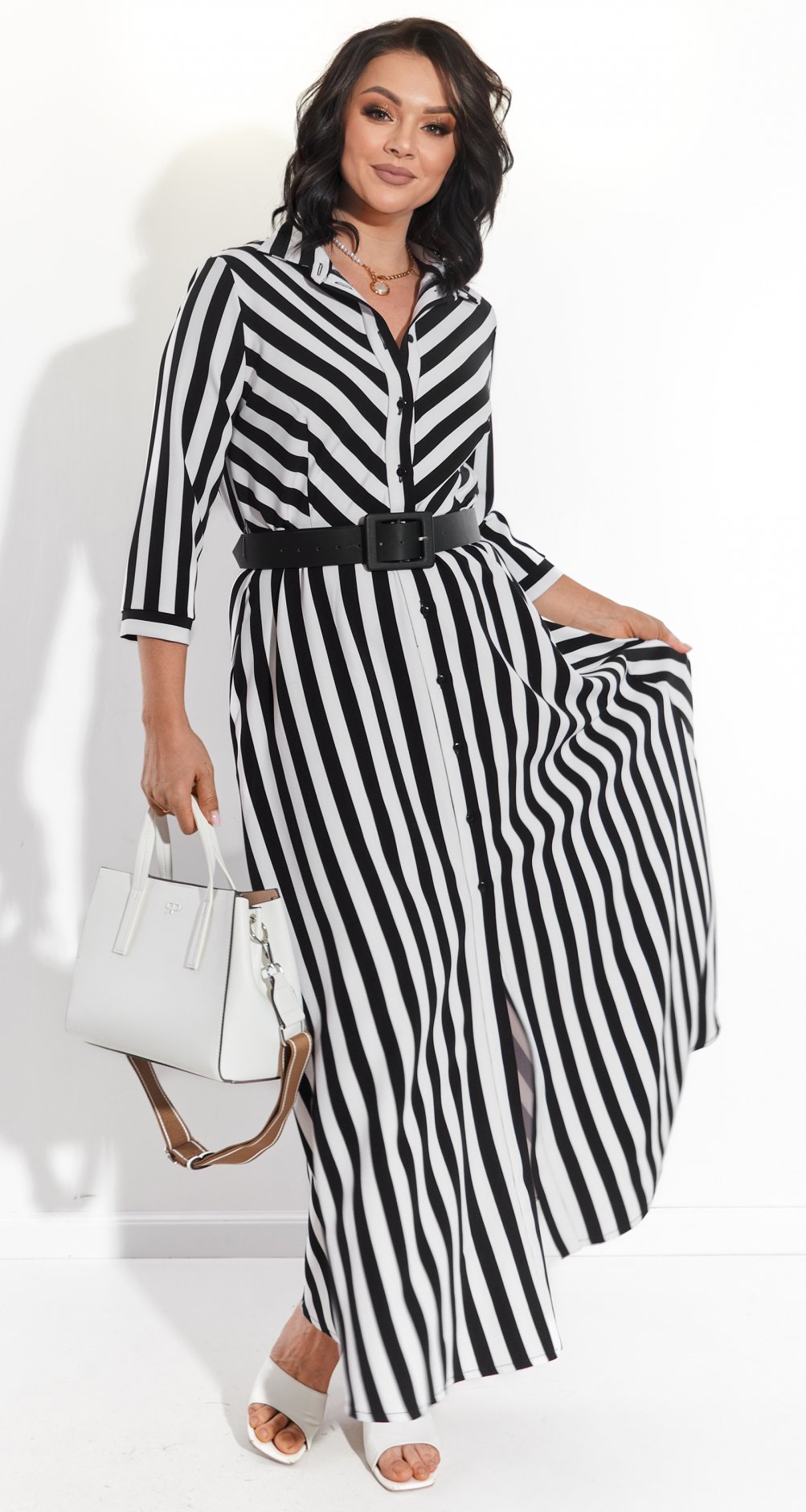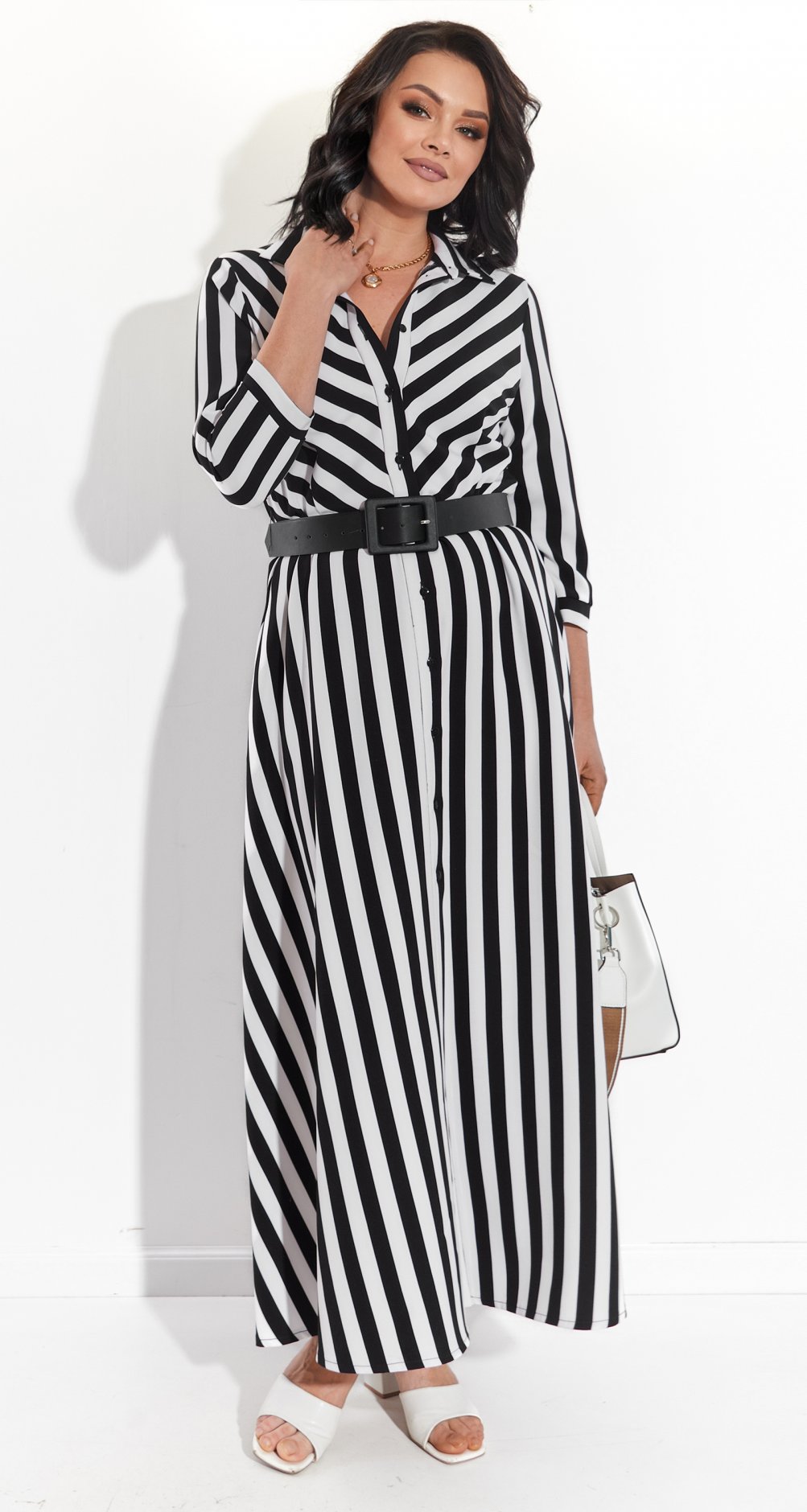 An effective and elegant dress-shirt, created for self-confident women. A contrasting vertical stripe visually stretches the silhouette and gives the image a slimness.