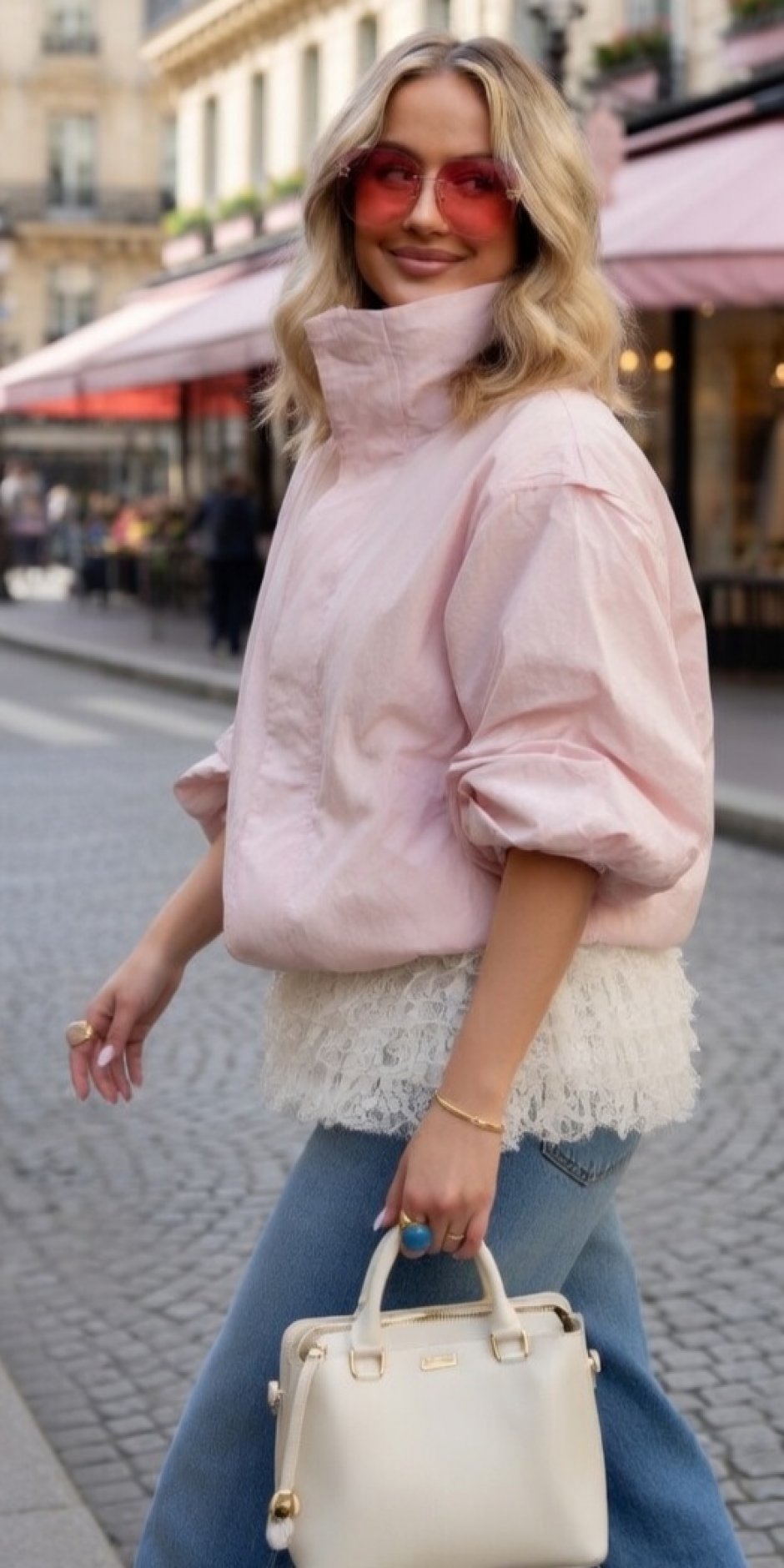 We present our new favorite - a voluminous windbreaker in the softest pink color, which will make you fall in love at first sight. This is the same case when comfort does not compromise with aesthetics.