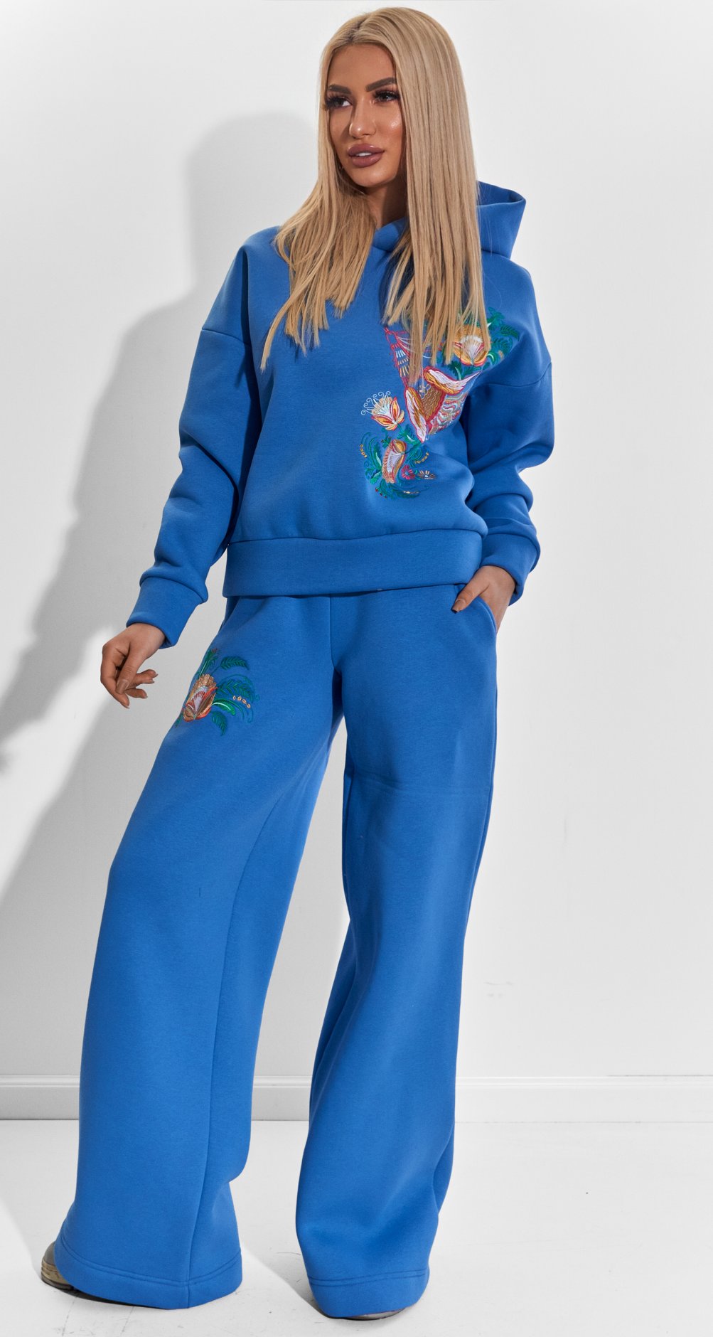 Цей костюм – втілення комфорту та стилю. Вільні штани палаццо не сковують рухів, даруючи відчуття легкості та невимушеності, а вишукана вишивка надає образу неповторного шарму та індивідуальності.