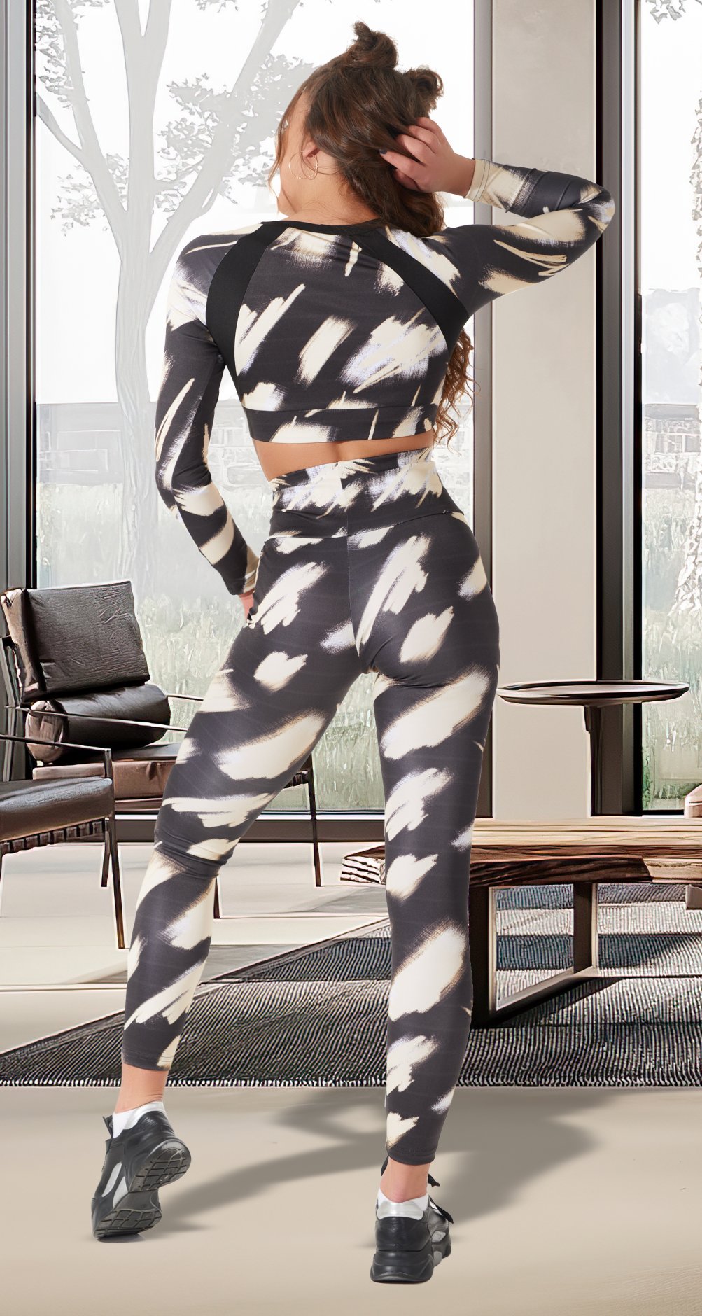 Ексклюзивний принт: Унікальний графічний візерунок у чорно-білих тонах виділить тебе з натовпу і підкреслить твою індивідуальність. Цей принт розроблений спеціально для тих, хто хоче виглядати стильно як у залі, так і поза його межами.