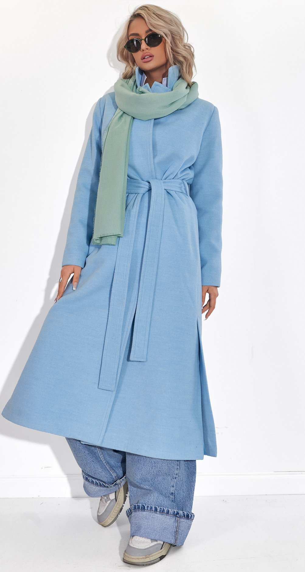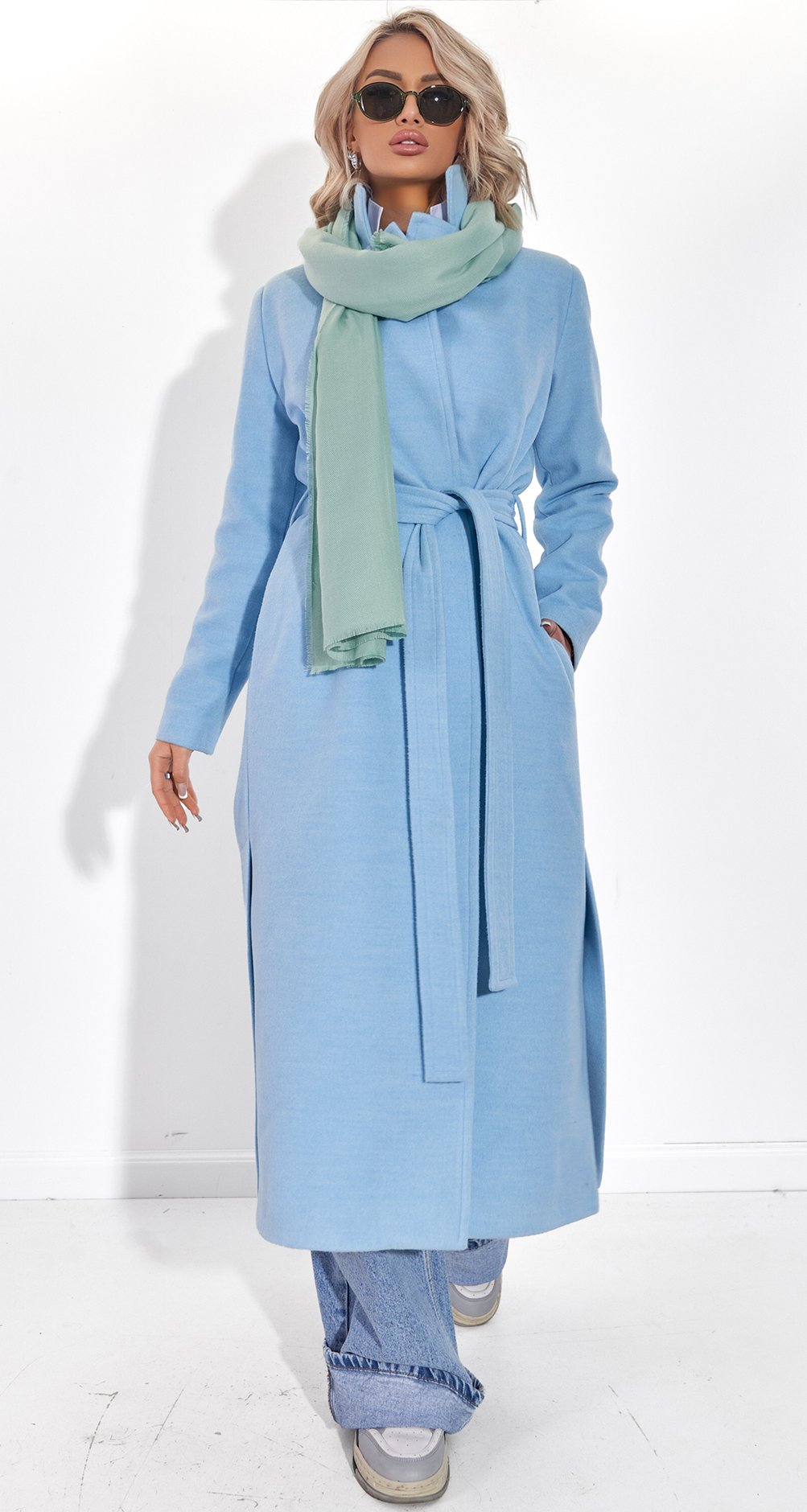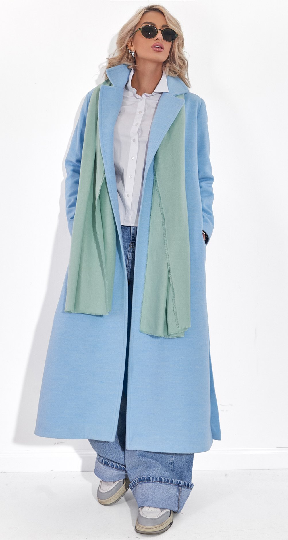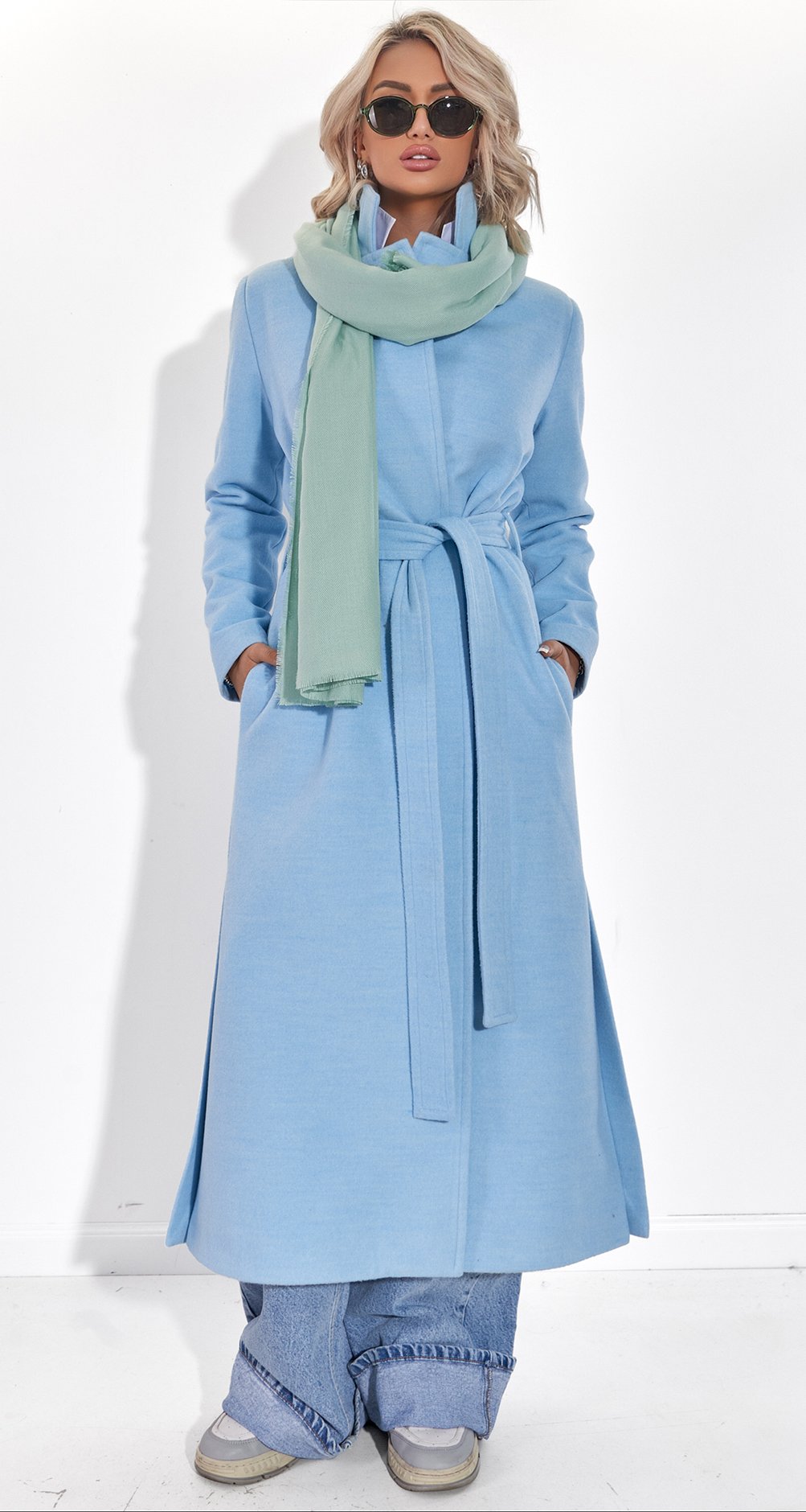 Це демісезонне пальто з кашеміру у відтінку "Небесного блакиту" (Sky Blue) - ідеальне поєднання класики, розкоші та останніх трендів. Довжина максі та прямий силует із поясом створюють витончений та жіночний образ, який підкреслить твій статус.