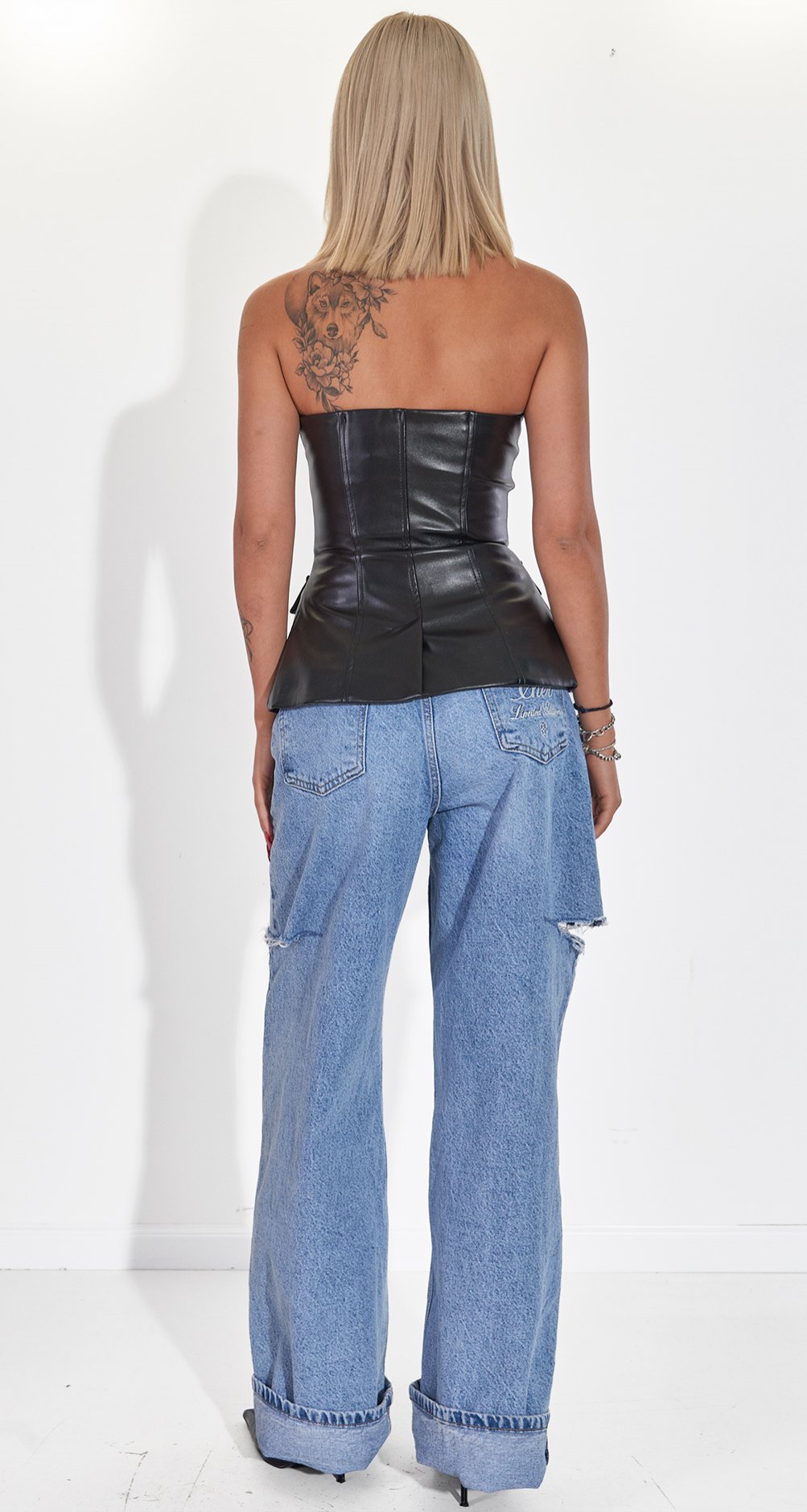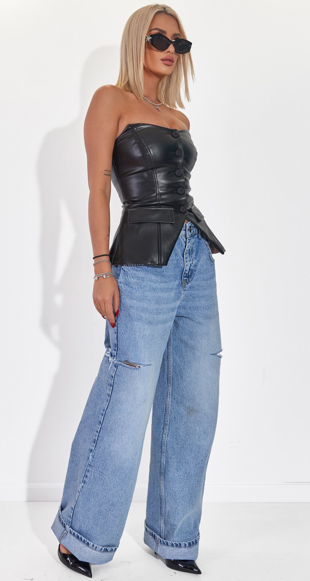 Підкресліть свою силу та жіночність з нашим корсетним топом з розкішної еко-шкіри! Цей корсет – не просто одяг, це заява. Класичний чорний колір та чіткі лінії створюють зухвалий та елегантний образ.