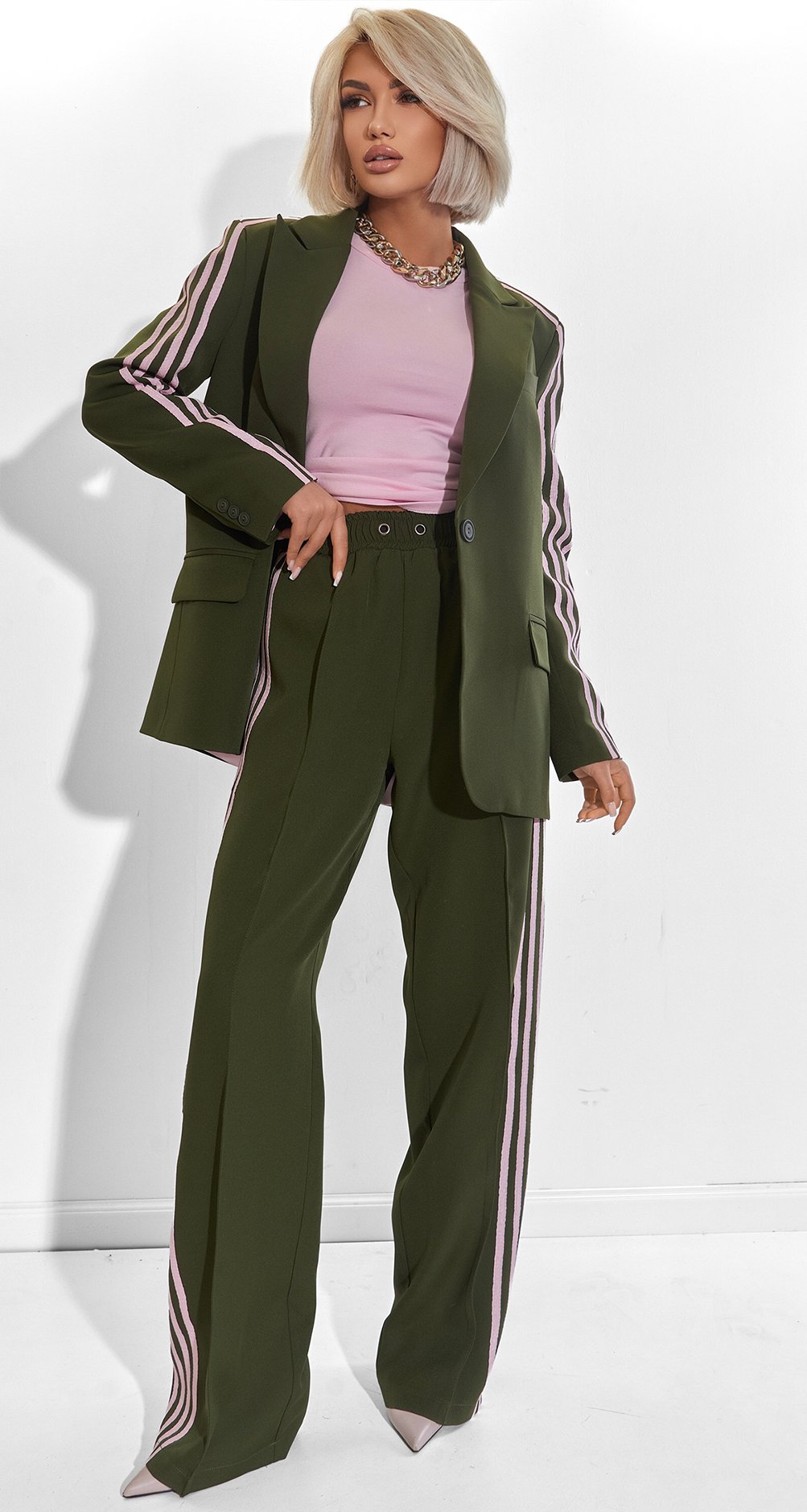 Акцентні лампаси Контрастні бічні лінії – це не просто тренд. Вони візуально витягують силует, надаючи вам зростання та витонченості.