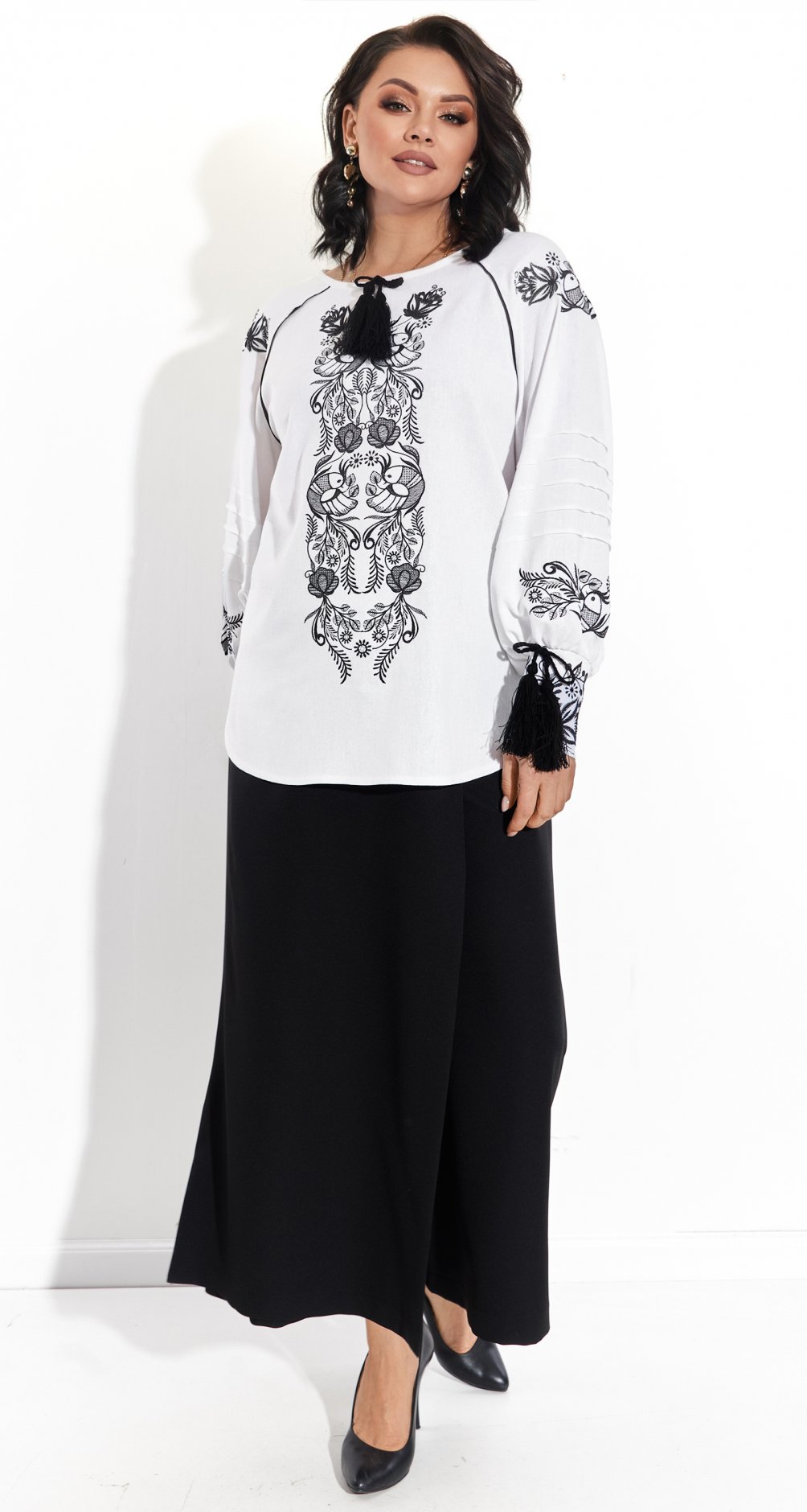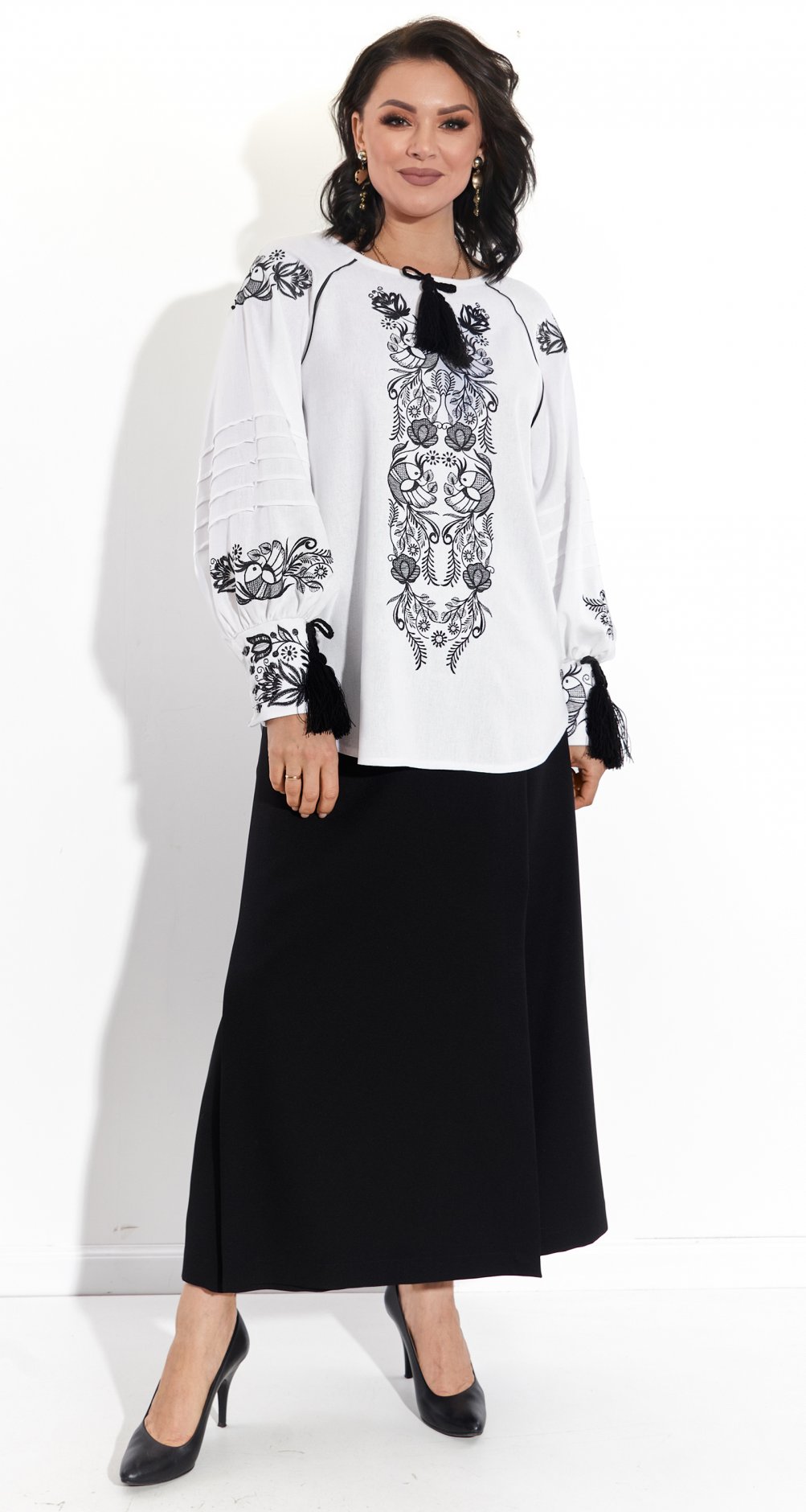 Класичний крій з пишними рукавами та акуратною горловиною забезпечує свободу рухів та універсальність у поєднаннях. Чорно-біла кольорова гама робить цю вишиванку неймовірно практичною для вашого гардеробу. Вона легко комбінується зі спідницями, брюками різних кольорів та фасонів, дозволяючи створювати безліч модних образів – від повсякденних до ошатних.