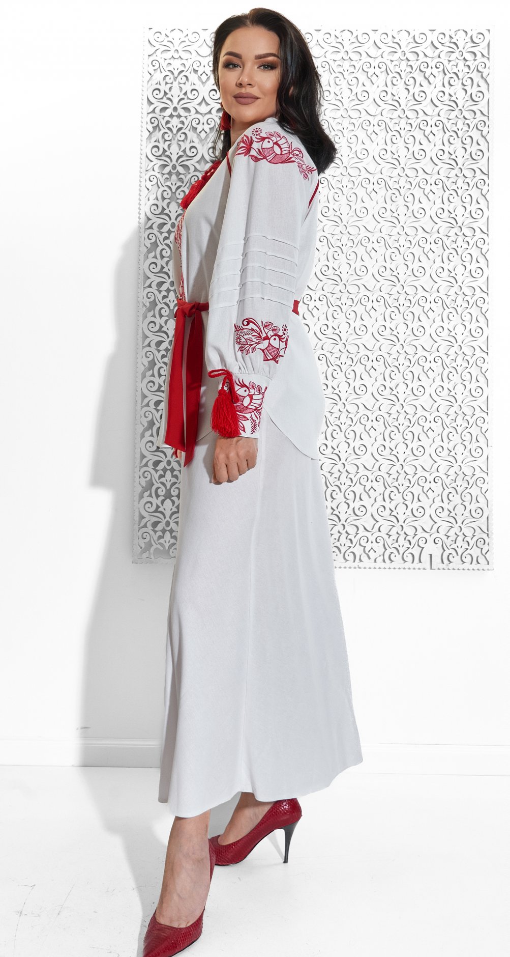 Декоративний пояс підкреслює талію та додає силуету жіночності. Ця вишиванка – не просто гарна річ, але й вигідне вкладення у ваш стиль, адже вона поєднує в собі комфорт натурального матеріалу, актуальний дизайн та легкість інтеграції у існуючий гардероб.