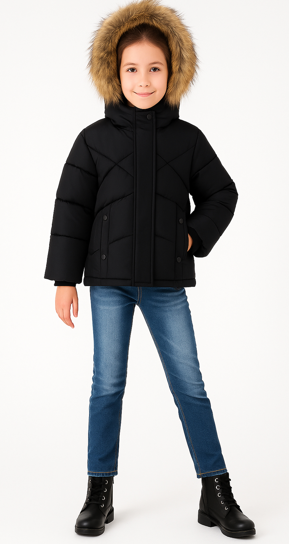 Тепла, легка і дуже зручна куртка для зими та міжсезоння. Об'ємний капюшон з м'яким хутром захищає від вітру і снігу, а продумана посадка не сковує рухи на прогулянці та дорогою до школи. Верх з щільної вологозахисної тканини, теплий утеплювач і м'яка підкладка дарують комфорт кожен день. Стильний дизайн легко поєднується з джинсами, лосинами і чобітками — дівчинці сподобається носити її без нагадувань!