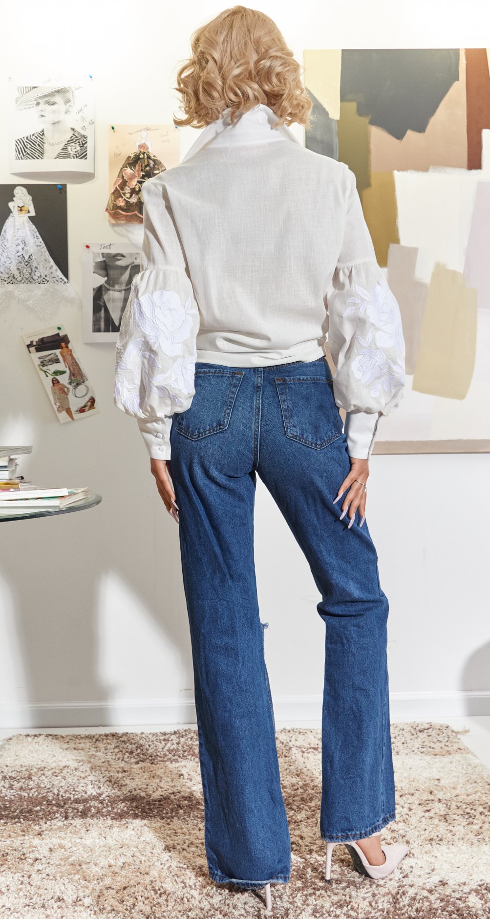 Елегантність і вишуканість: лляна біла блузка з вишивкою на рукавах – ваш ідеальний образ!