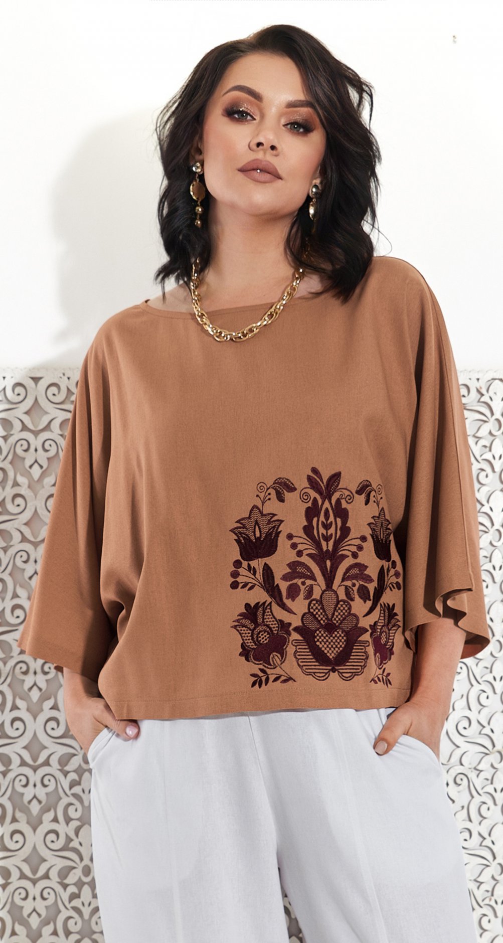 Ця лляна блуза - ідеальний вибір для жінок, які цінують комфорт та стиль. Вільний крій та натуральний матеріал забезпечують максимальну зручність, а вишукана українська вишивка надає блузі унікальності та етнічного шарму. Блуза чудово підійде для теплих днів, створюючи легкий та повітряний образ, що гармонійно поєднує в собі традиції та сучасний стиль. Втілить свою індивідуальність із цією стильною та комфортною річчю!