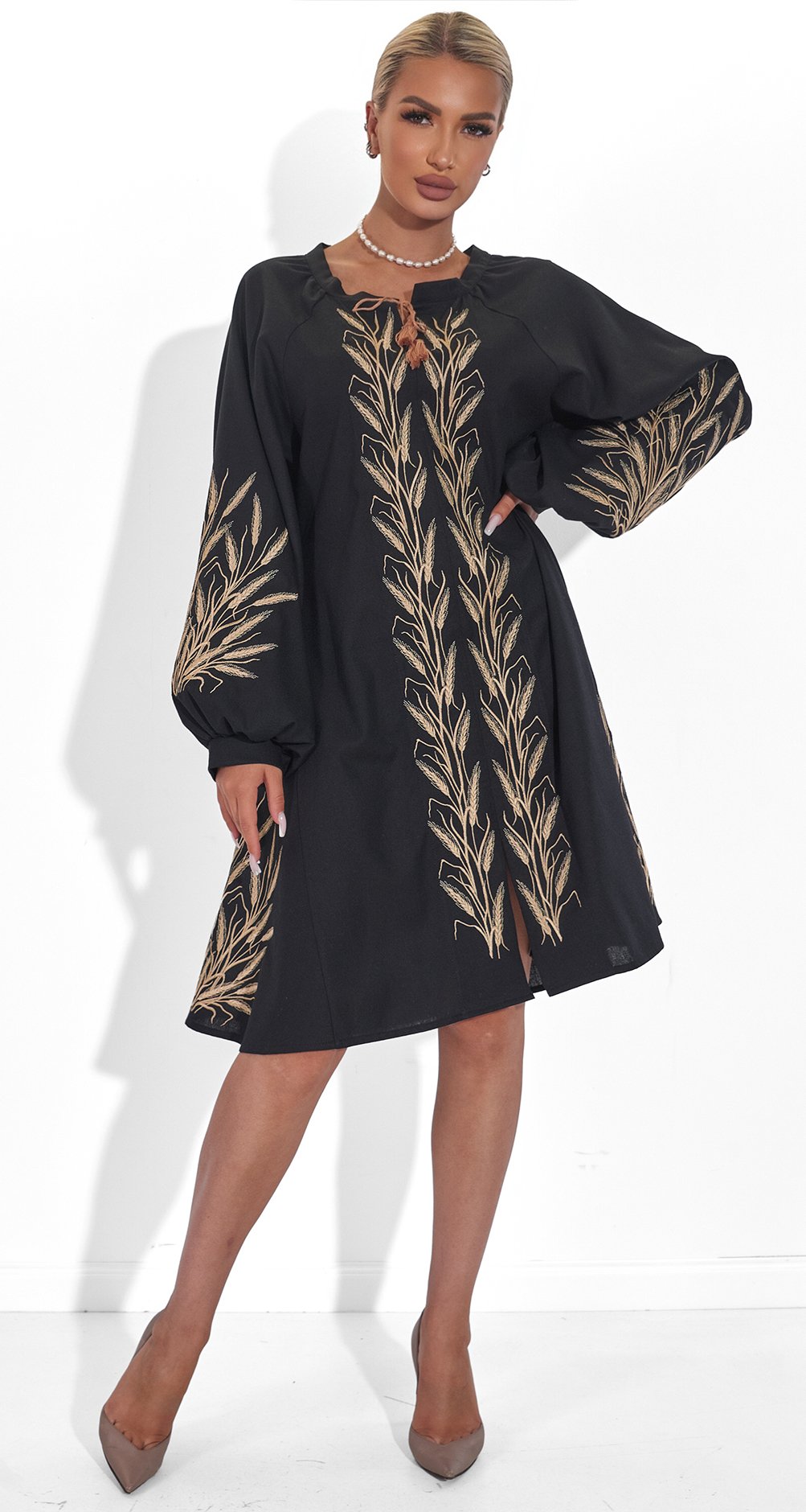 Відчуйте себе богинею в цій унікальній сукні, яка поєднує в собі стиль, комфорт та національний колорит.