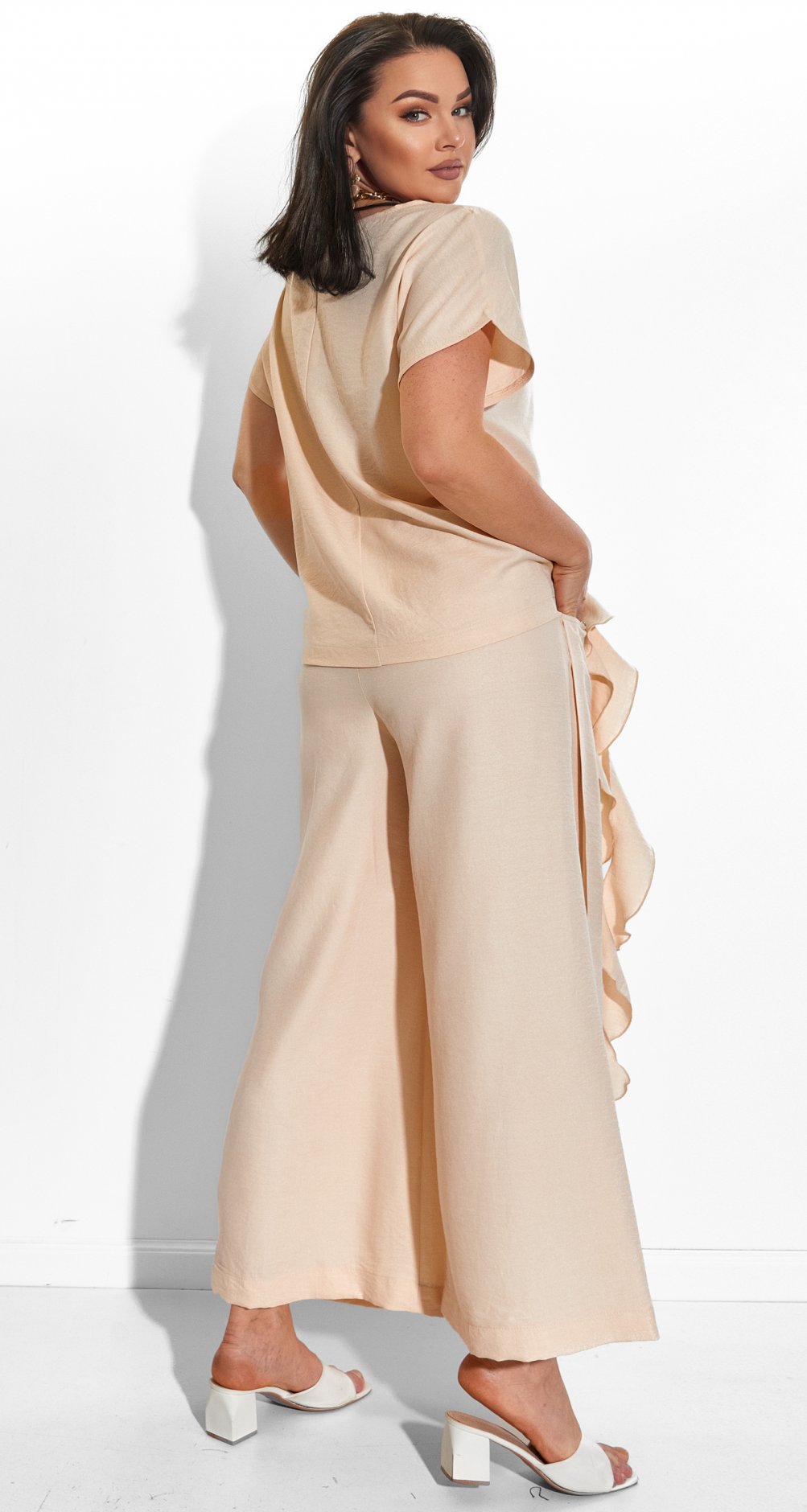 Пориньте у світ невимушеної елегантності з нашим ексклюзивним лляним костюмом! Цей вишуканий комплект, що складається з повітряної блузи з кокетливими воланами та стильної спідниці-брюк, стане вашим незамінним супутником у спекотні літні дні та прохолодні вечори.