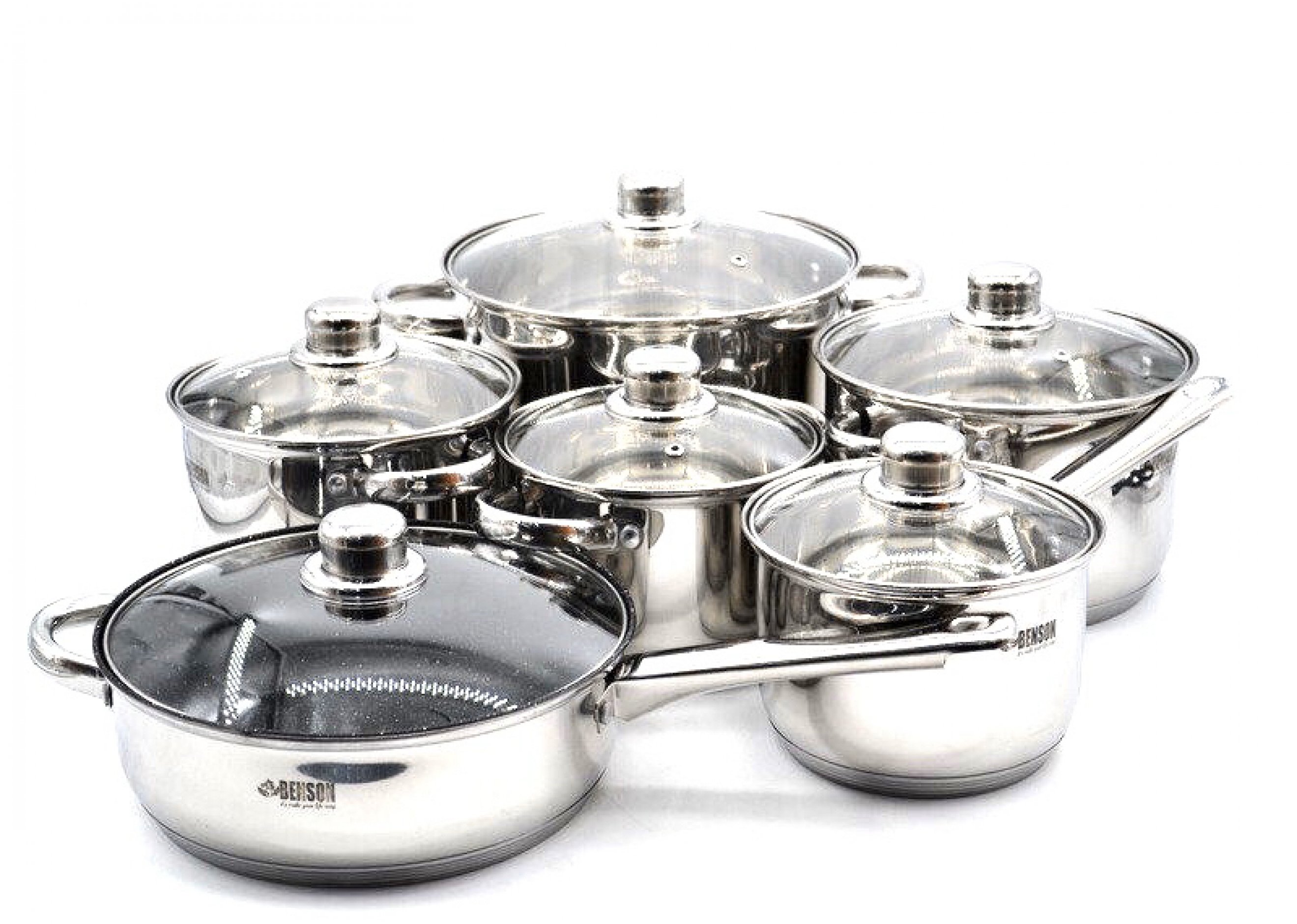 Набір посуду Benson із 12 предметів виготовлений із високоякісної сталі.