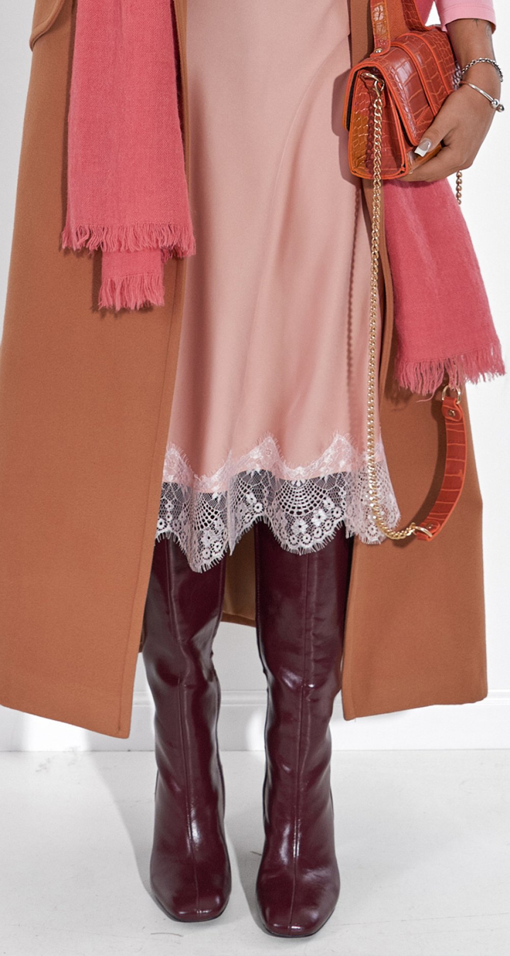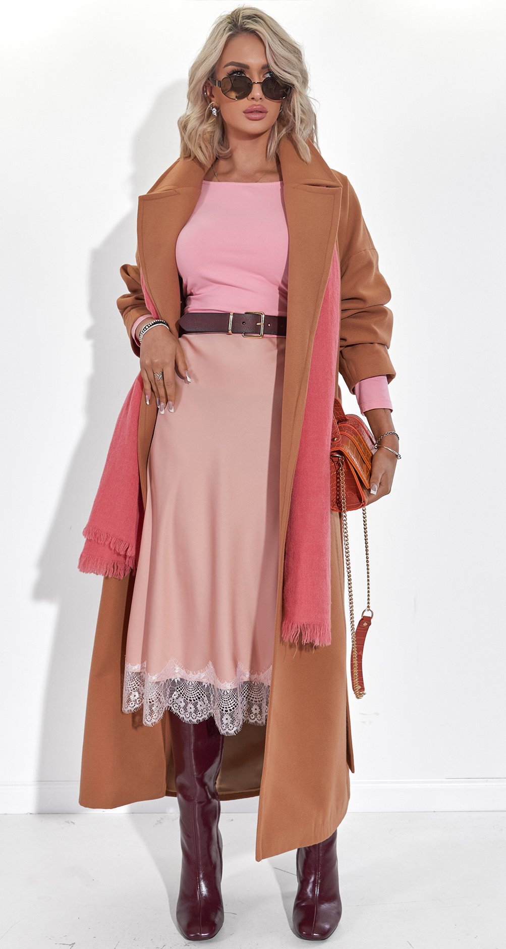 Представляємо хіт, який підкорив серця всіх модниць: Шовкова спідниця-міді, скроєна по косій, з розкішним мереживним подолом. Ця спідниця – еталон елегантності та чуттєвості, ідеальний вибір для створення незабутніх образів.