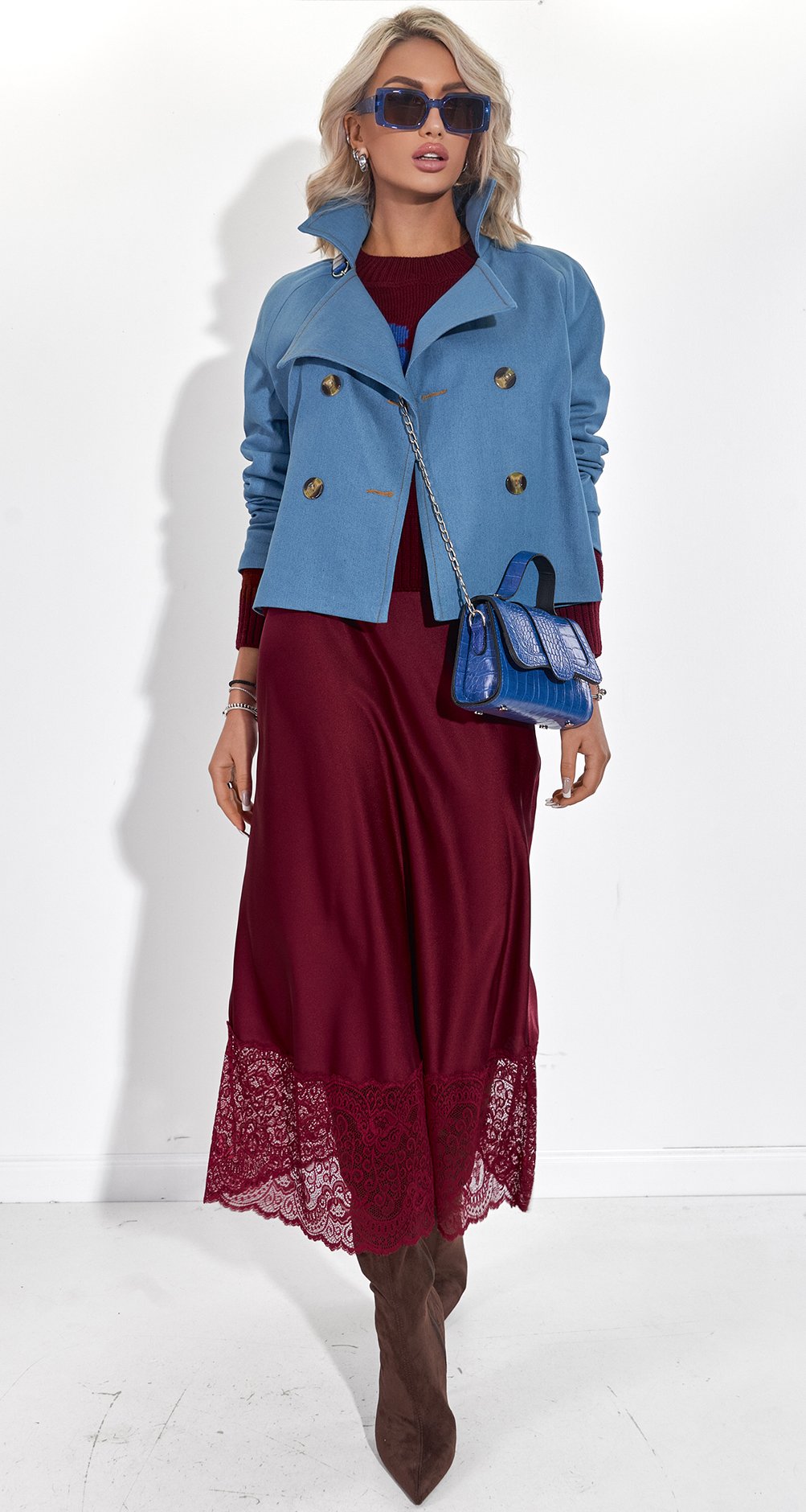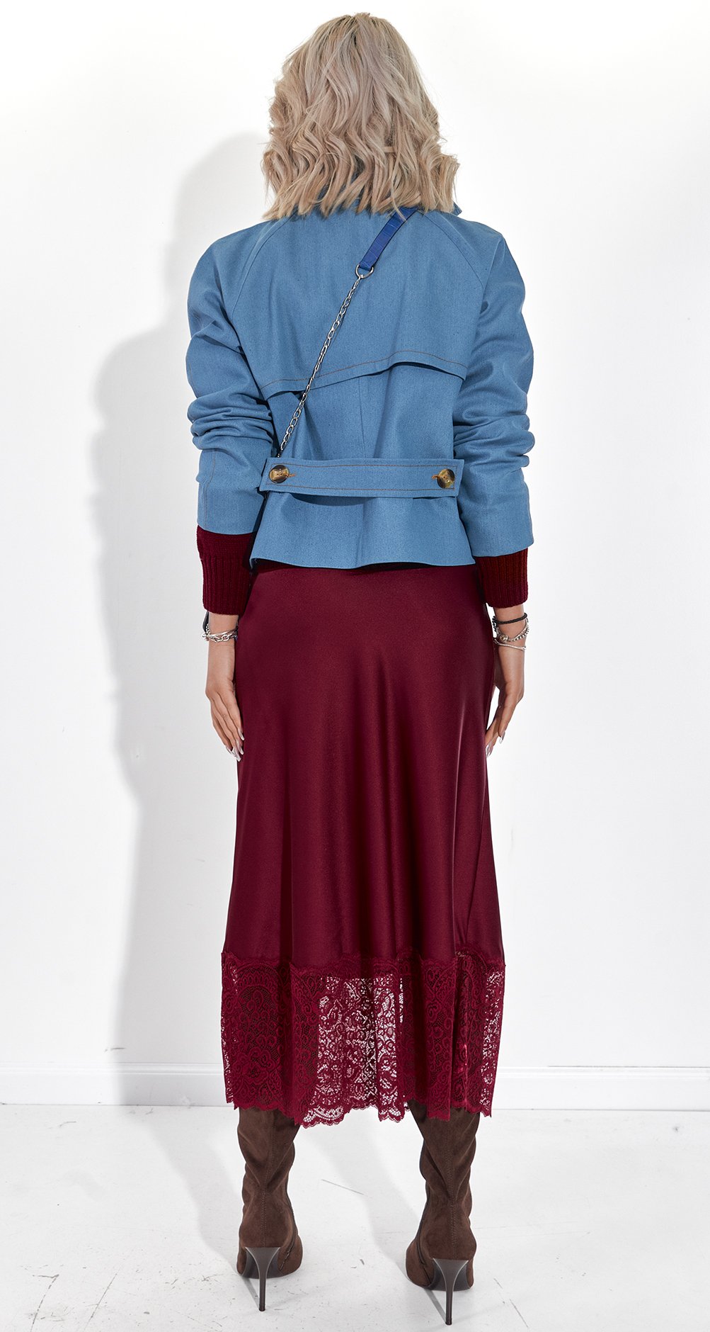 Представляємо хіт, який підкорив серця всіх модниць: Шовкова спідниця-міді, скроєна по косій, з розкішним мереживним подолом. Ця спідниця – еталон елегантності та чуттєвості, ідеальний вибір для створення незабутніх образів.