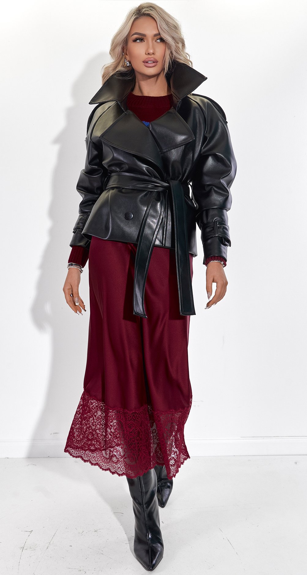 Як на фото, спідниця чудово поєднується з об'ємною шкіряною курткою та високими чоботями для створення сміливого, міського образу, або з легкою блузою та човниками для романтичного побачення. Це Ваш інструмент для стилю від повсякденного шику до вечірнього гламуру.