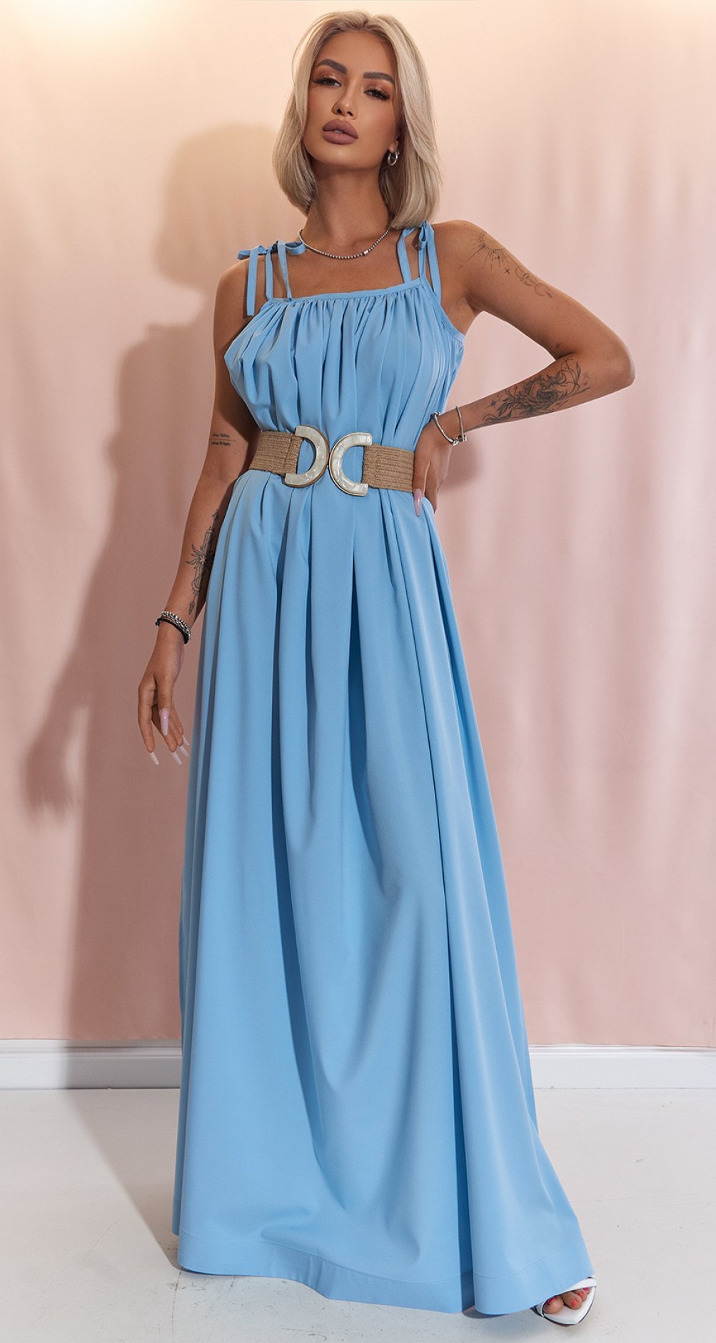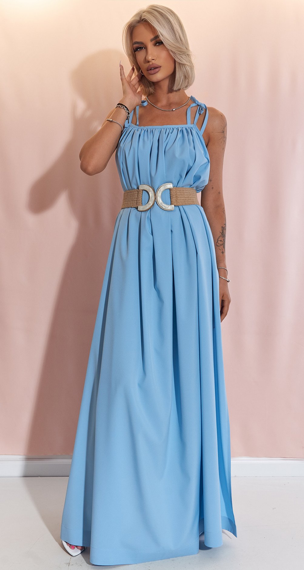 Зустрічайте ідеальну сукню для спекотного сезону! Ця стильна максі-сукня кольору неба стане незамінним елементом вашого гардеробу. Елегантні високі розрізи з боків додають динамічності і дозволяють продемонструвати красу ніг, не втрачаючи при цьому жіночності. Вільний крій і легка тканина забезпечують максимальний комфорт в будь-яку погоду. Носіть його з сандалями для повсякденного образу або з туфлями на підборах для вечірнього виходу. Тренд 2025 - розслаблений шик і комфорт!