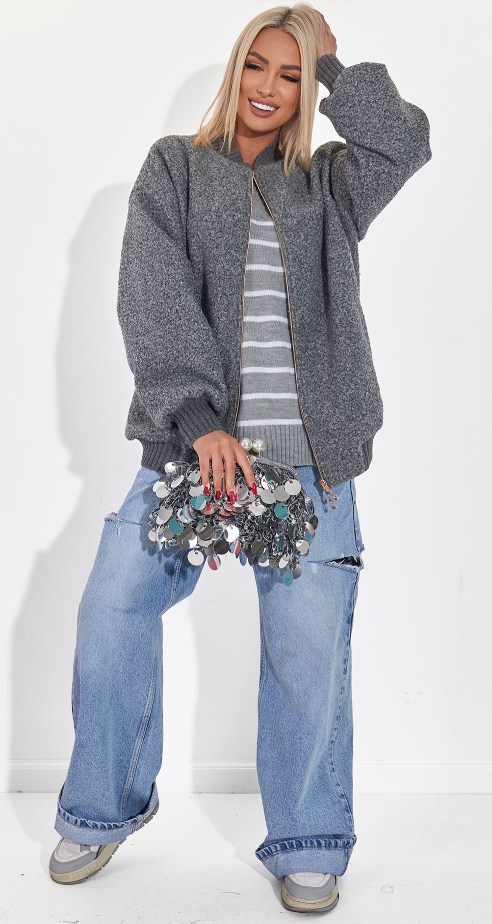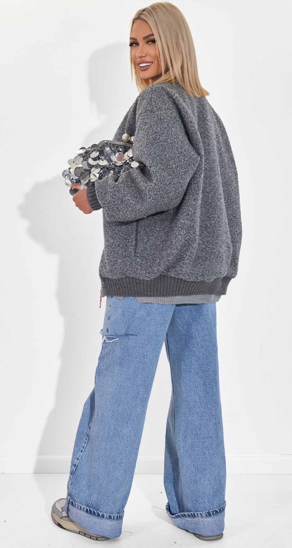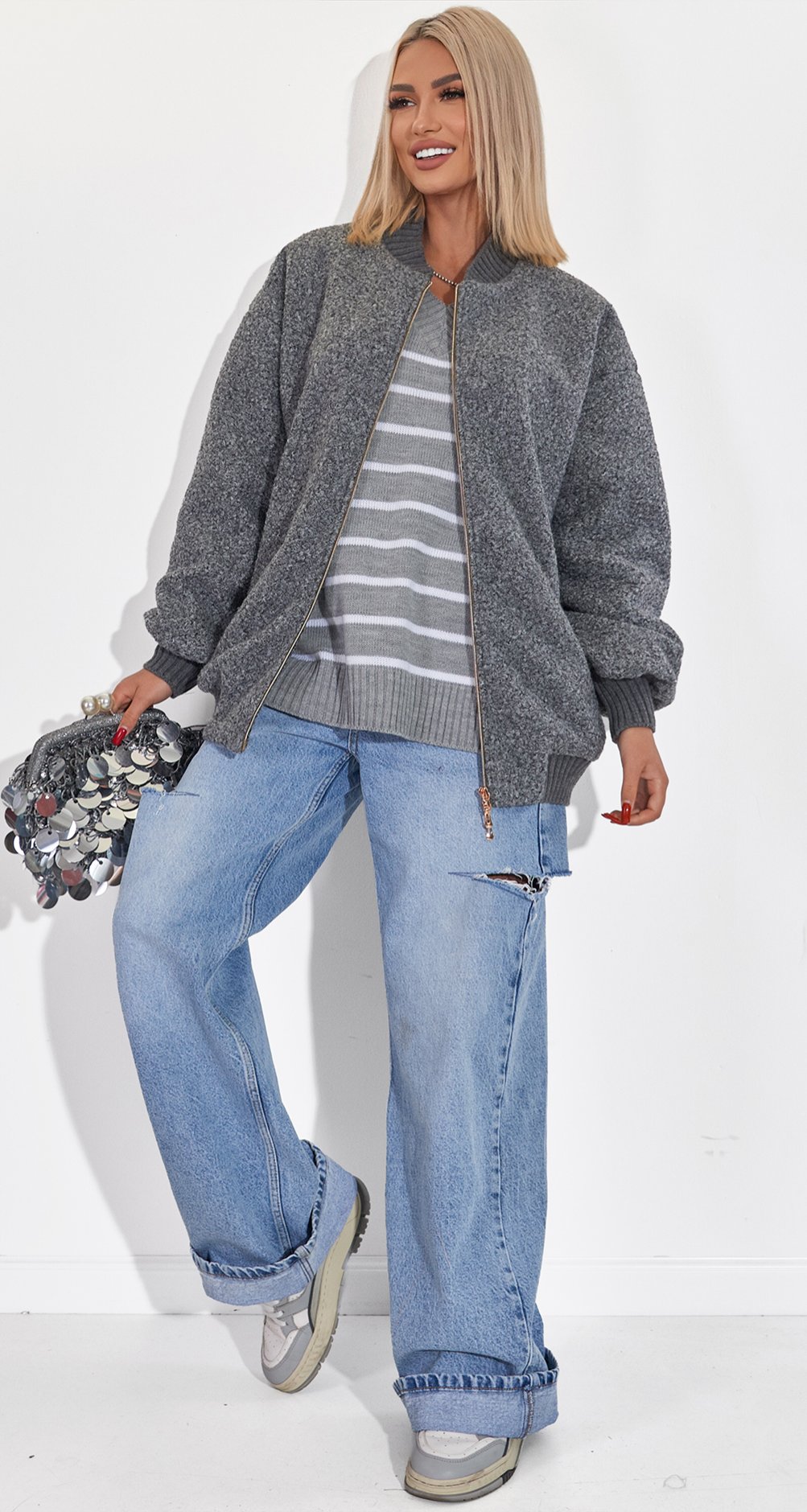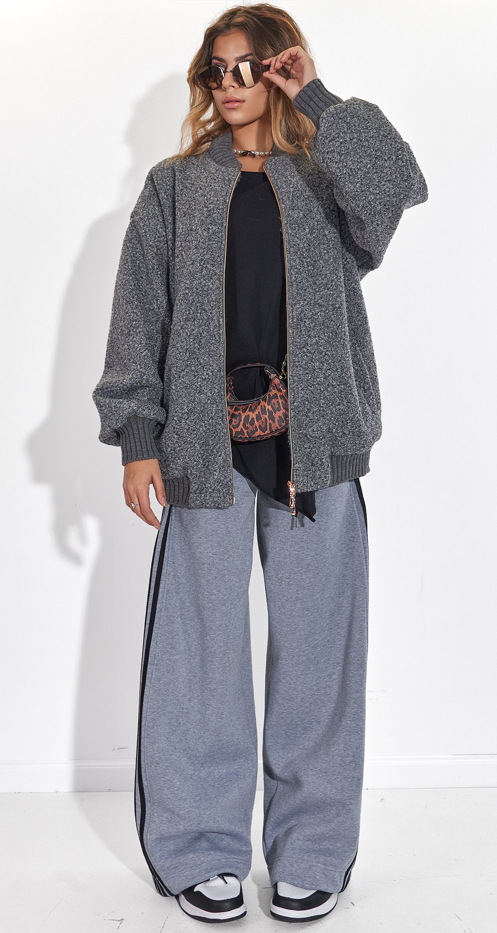 Універсальність: Легко поєднується з улюбленими джинсами, брюками-карго або навіть сукнею. Додайте масивні прикраси та окуляри, як на фото, щоб створити карколомний стрітстайл-цибуля.