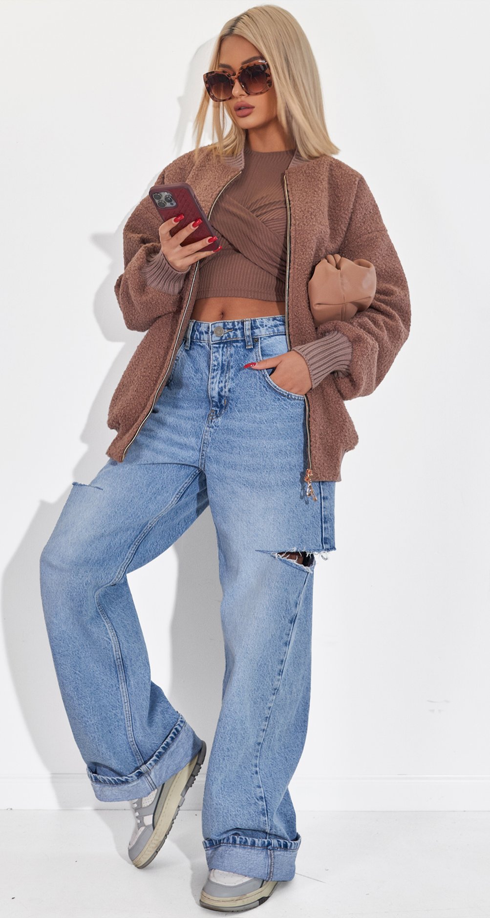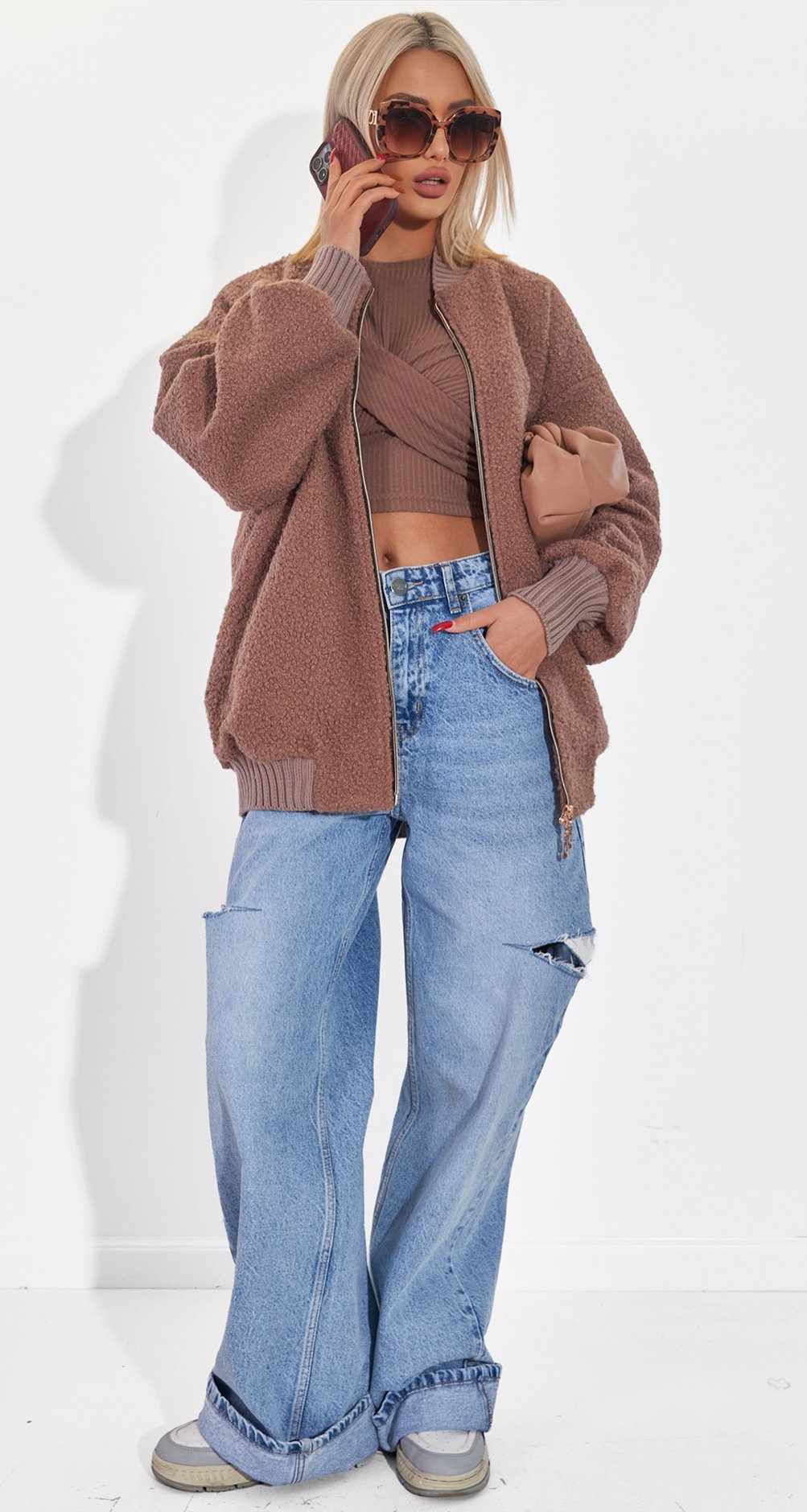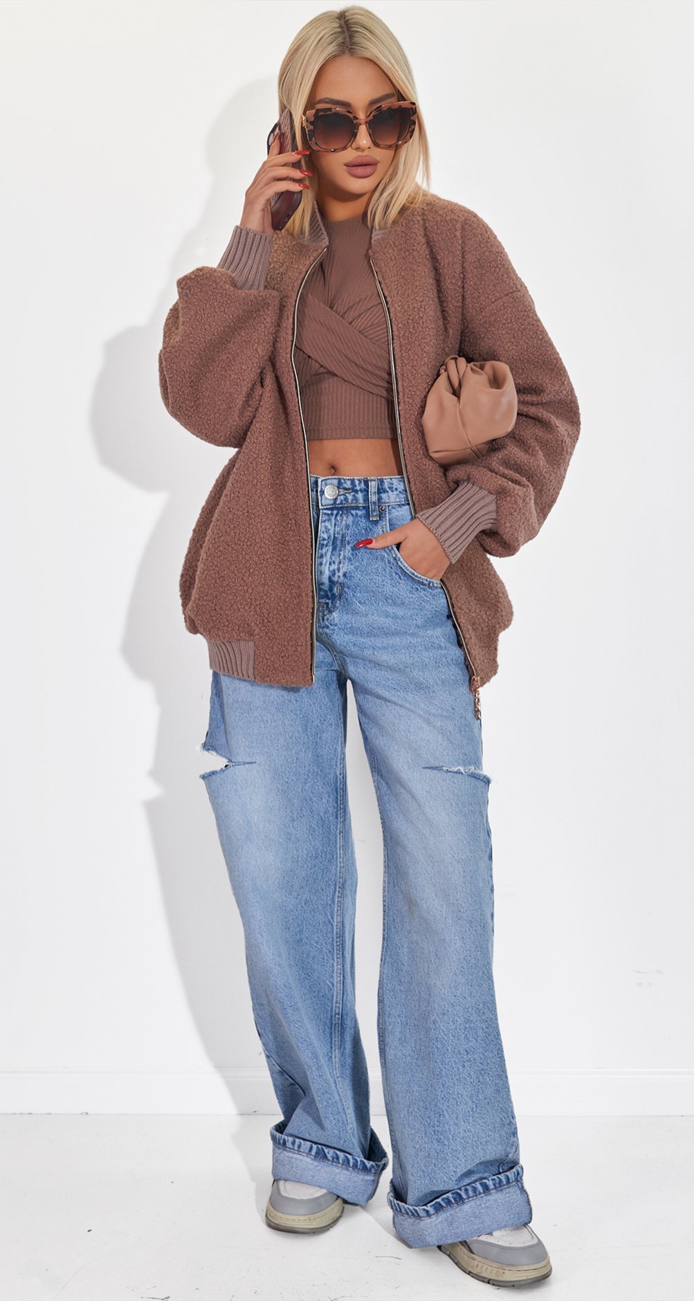 Універсальність: Легко поєднується з улюбленими джинсами, брюками-карго або навіть сукнею. Додайте масивні прикраси та окуляри, як на фото, щоб створити карколомний стрітстайл-цибуля.