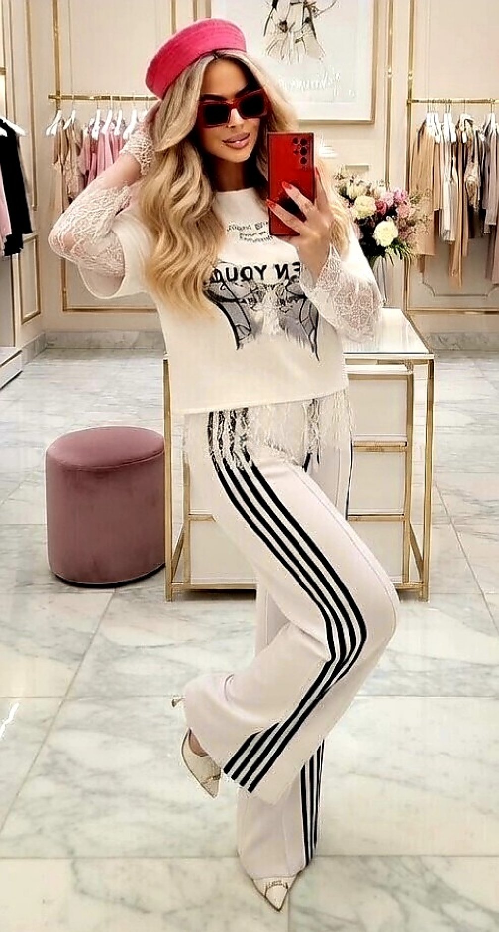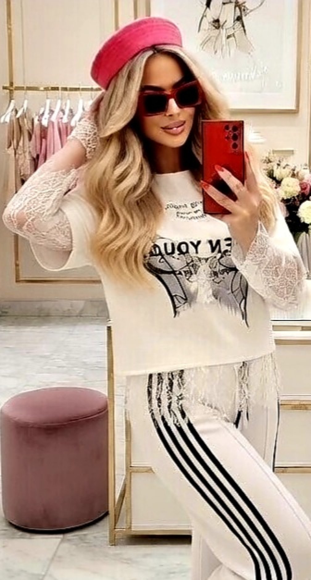Игра на контрастах: Сочетание гладкой основы и ажурных рукавов делает эту вещь самодостаточной — вам не нужно подбирать сложные аксессуары, футболка сделает всё за вас.