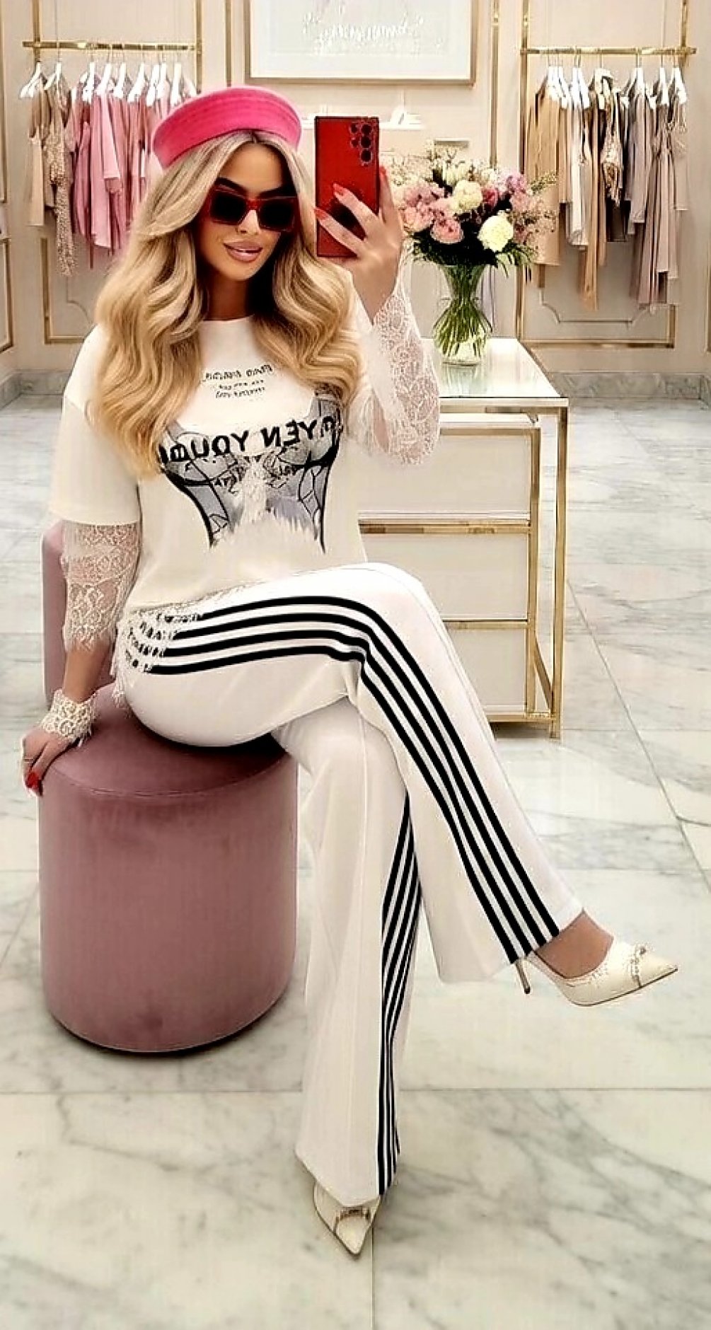 Стильный принт-корсет: Имитация корсетной шнуровки на груди визуально структурирует силуэт, добавляя образу женственности и легкой дерзости.