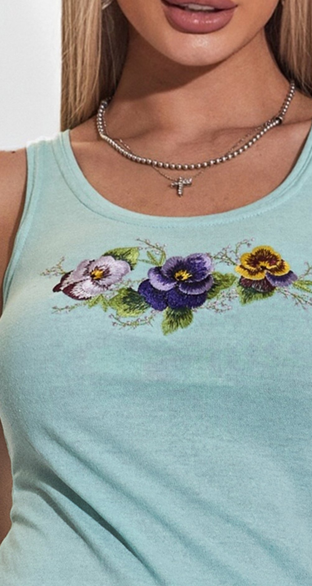 Эта легкая майка из мягкого хлопка — идеальный выбор для твоего летнего гардероба! Нежная вышивка с цветочными мотивами добавит романтичности и свежести в любой образ. Комфортная и стильная, она прекрасно сочетается с джинсами, шортами или юбкой. Создай неповторимый образ, который подчеркнет твою женственность и индивидуальность. Эта майка станет твоей любимой вещью на каждый день!