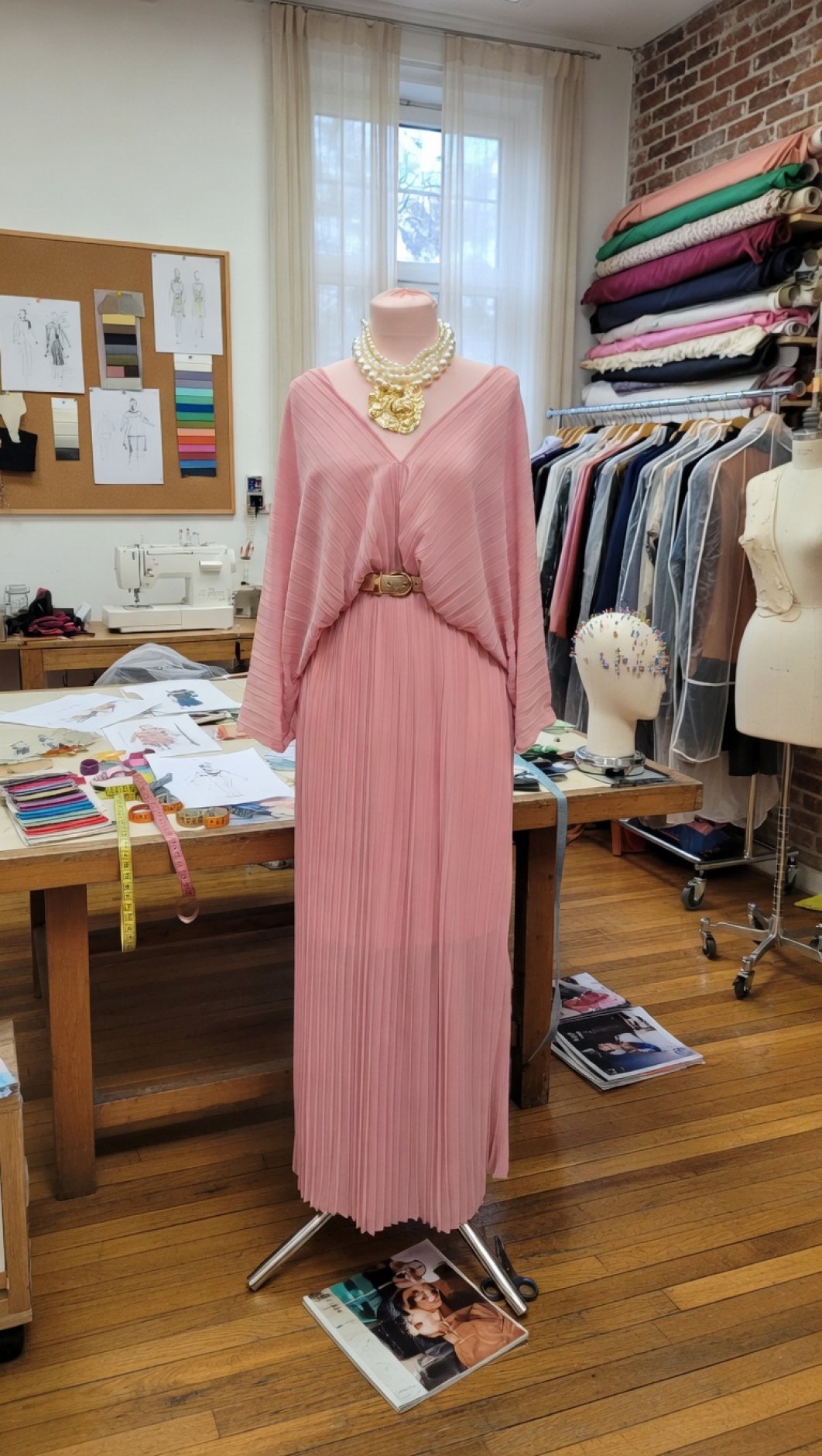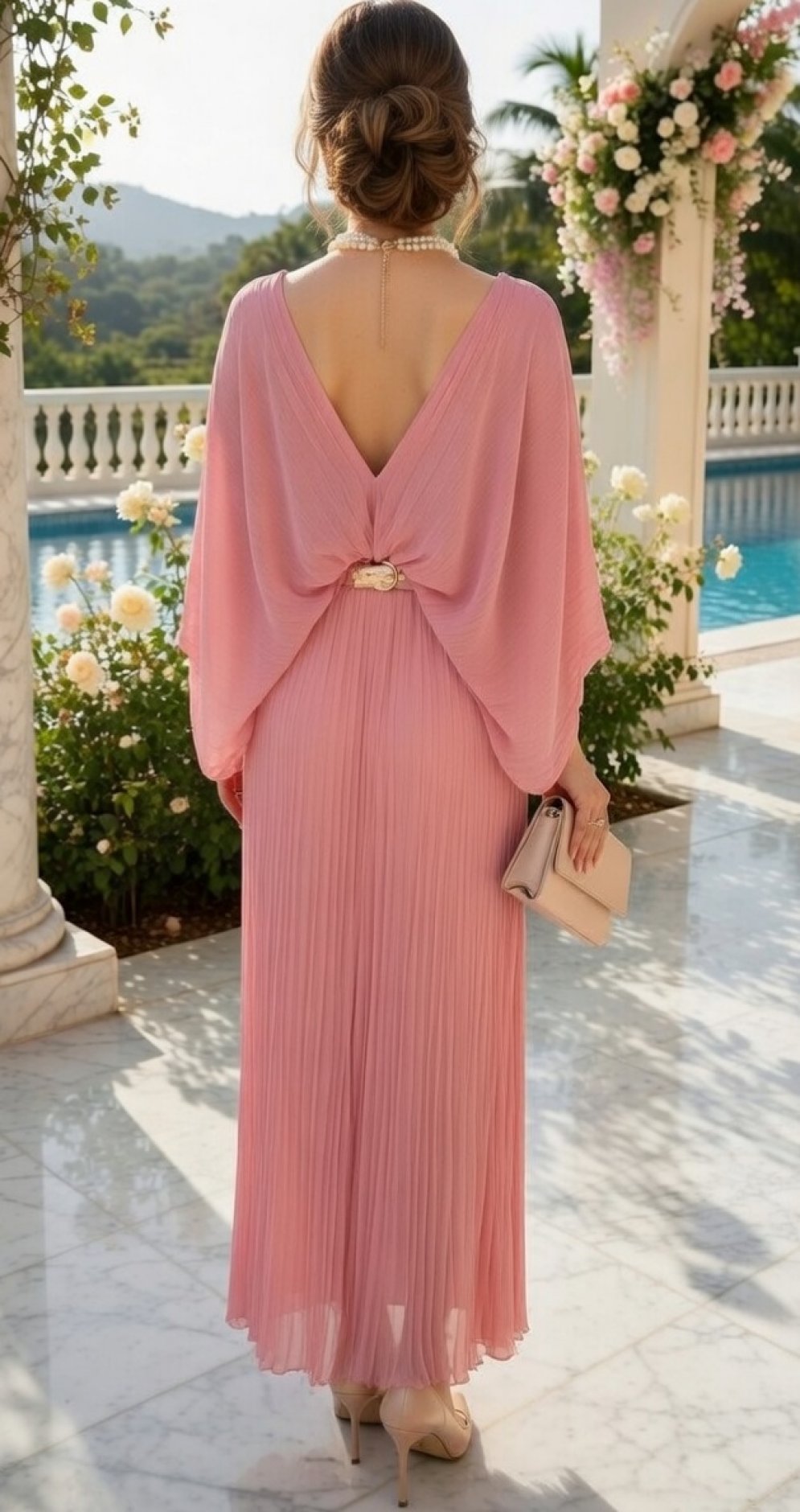 Ткань: Воздушный шифон плиссе, создающий изящный силуэт и хорошо играющий при каждом шаге.