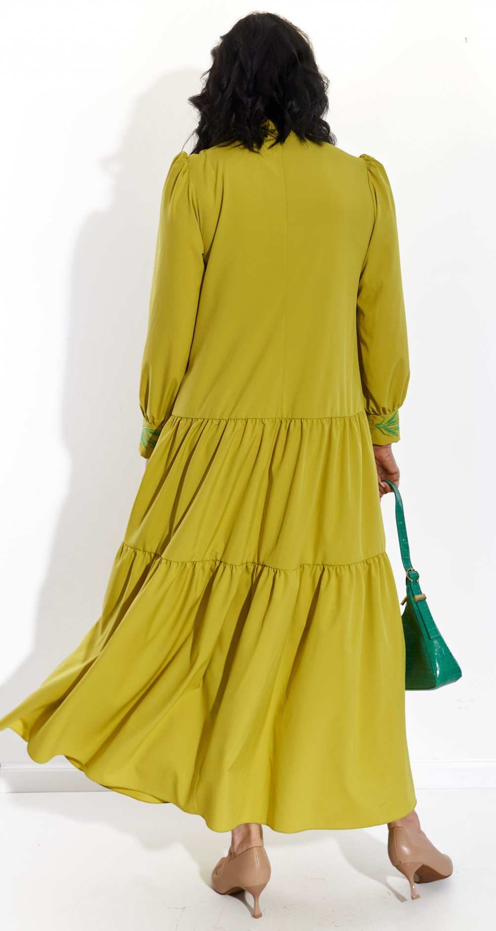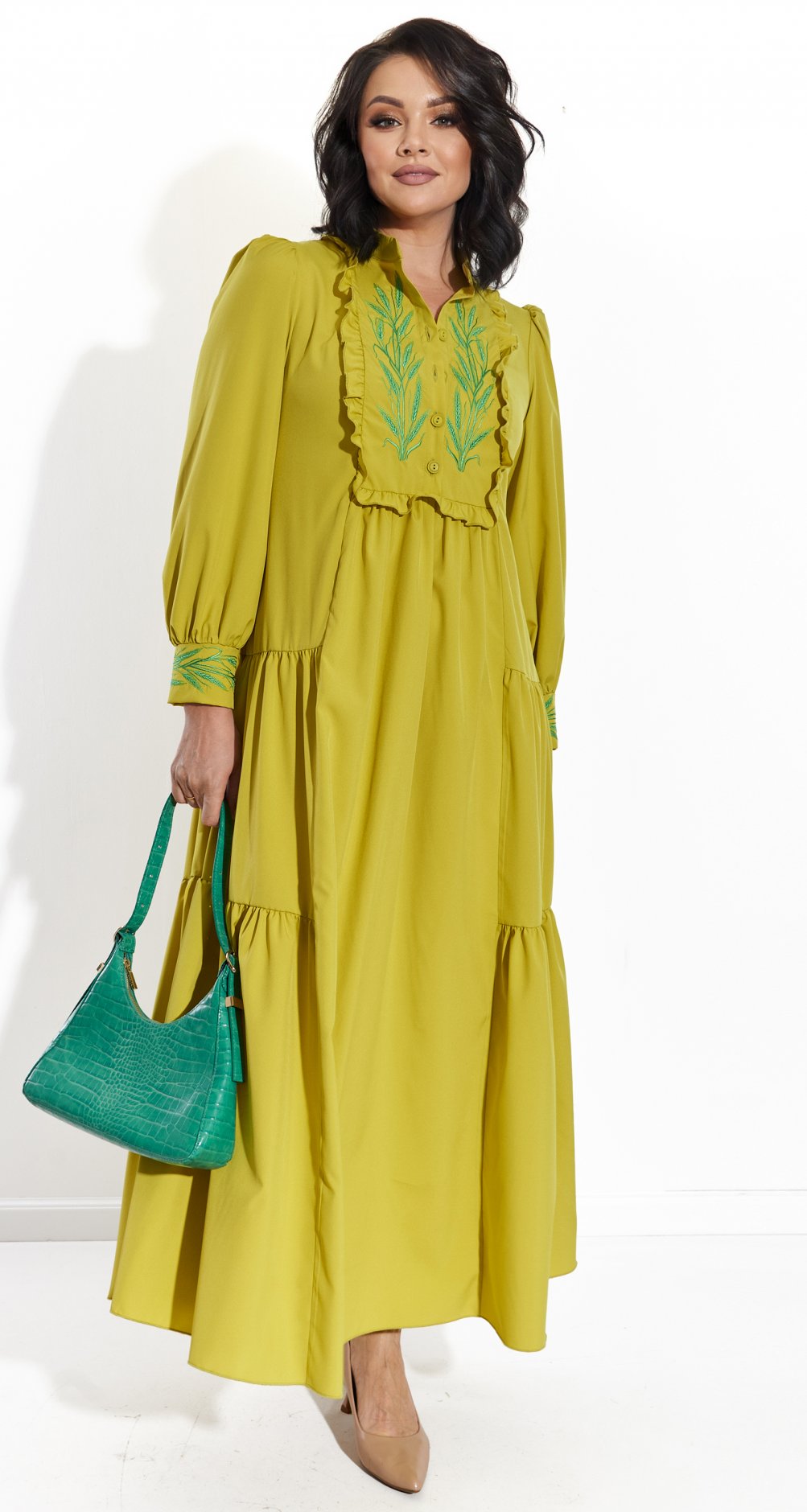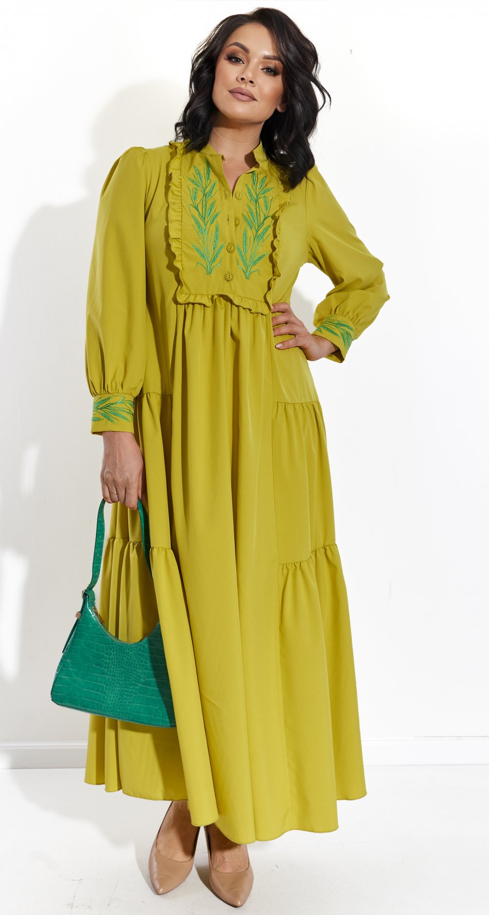 Платье доступно в разных цветах, позволяя выбрать идеальный вариант для любого настроения и случая. Отлично сочетается с классическими лодочками или удобными босоножками, создавая как повседневные, так и праздничные образы.