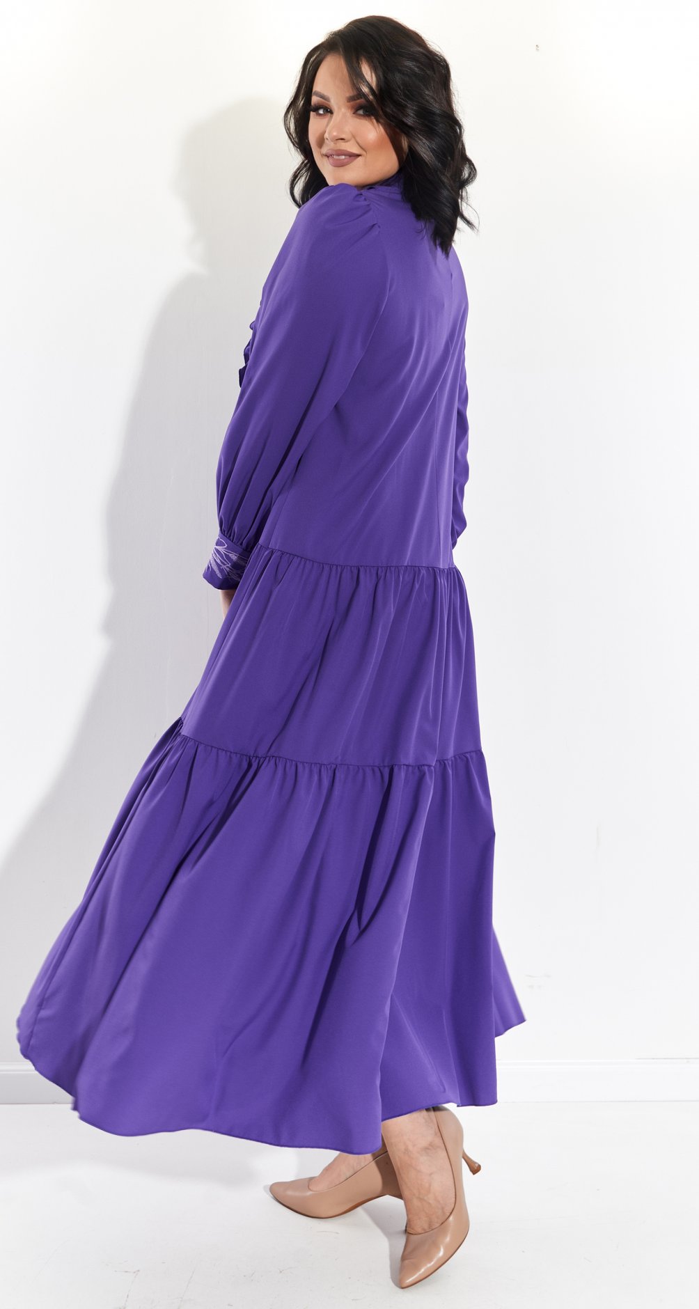 Платье доступно в разных цветах, позволяя выбрать идеальный вариант для любого настроения и случая. Отлично сочетается с классическими лодочками или удобными босоножками, создавая как повседневные, так и праздничные образы.