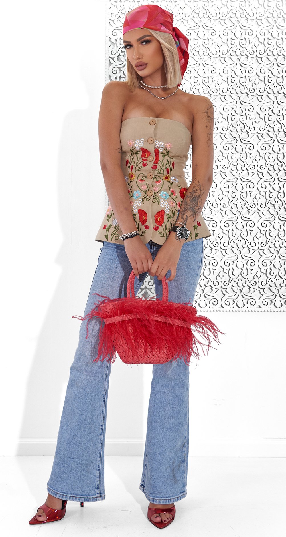 * Изысканная вышивка: Каждая деталь вышивки – это произведение искусства, которое придает корсету уникальный и богемный шарм. Яркие цветочные мотивы, выполненные с любовью и вниманием к деталям, подчеркнут вашу индивидуальность и тонкий вкус.