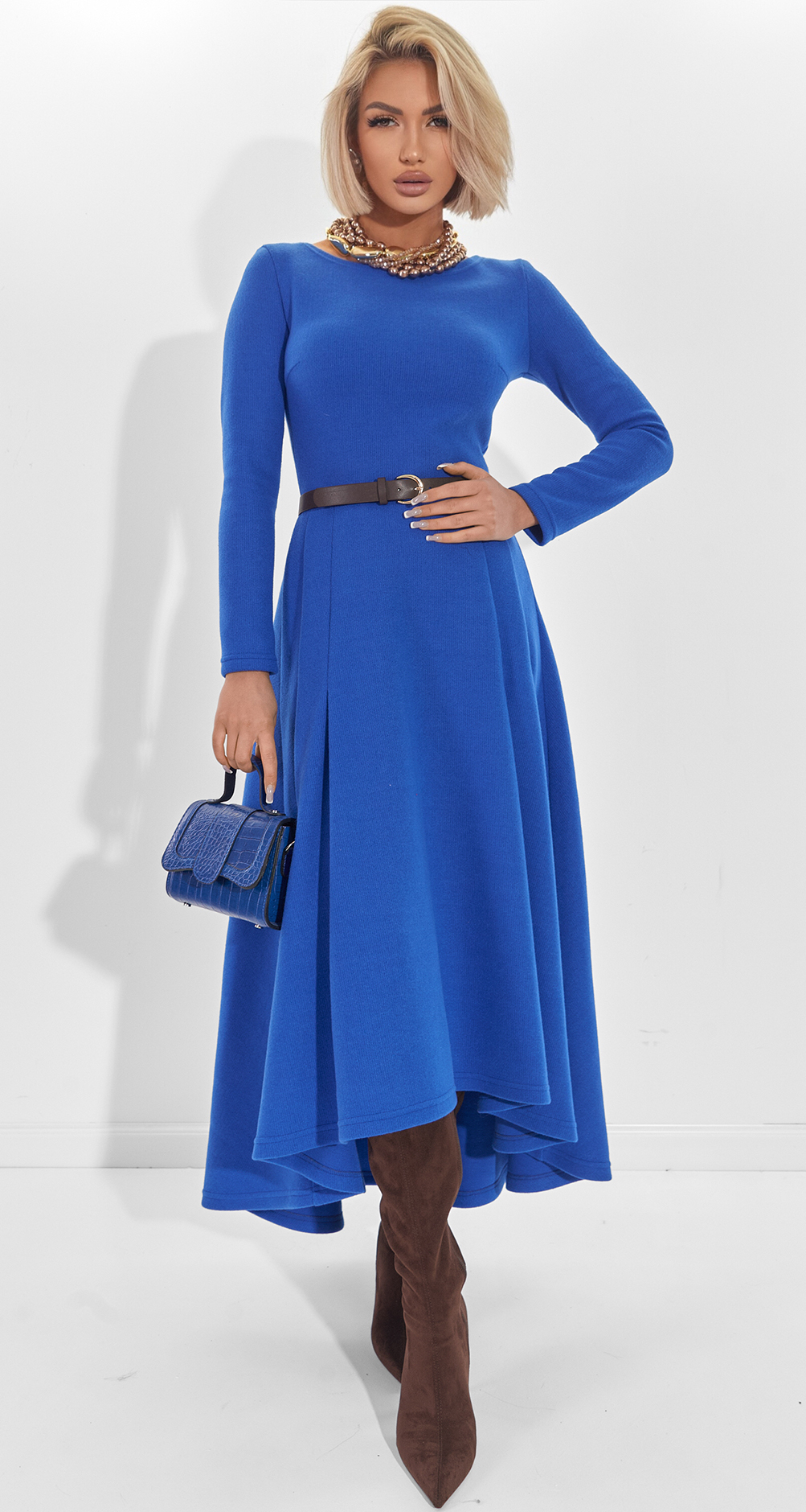 Магія тканини джерсі: Ми обрали щільне, еластичне джерсі преміальної якості. Воно м’яко стягує фігуру, приховуючи дрібні нюанси та створюючи бездоганний силует. Тканина чудово тримає форму, не витягується і при цьому дозволяє шкірі дихати.