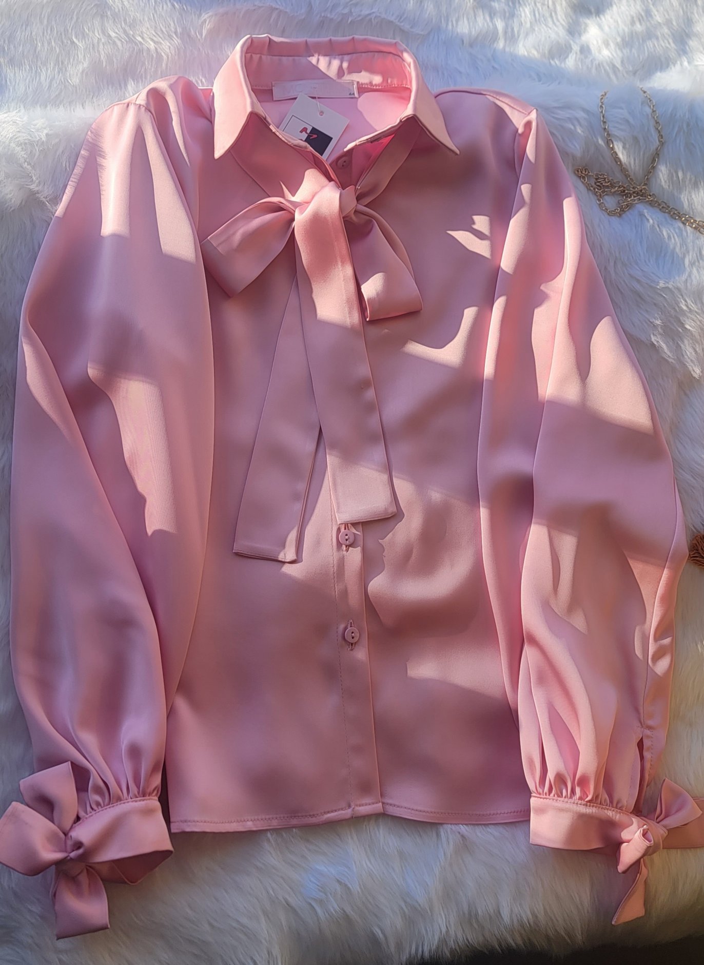 Романтичные манжеты: Акцентные завязки на рукавах добавляют образу женственности и позволяют регулировать объем манжета по вашему желанию.