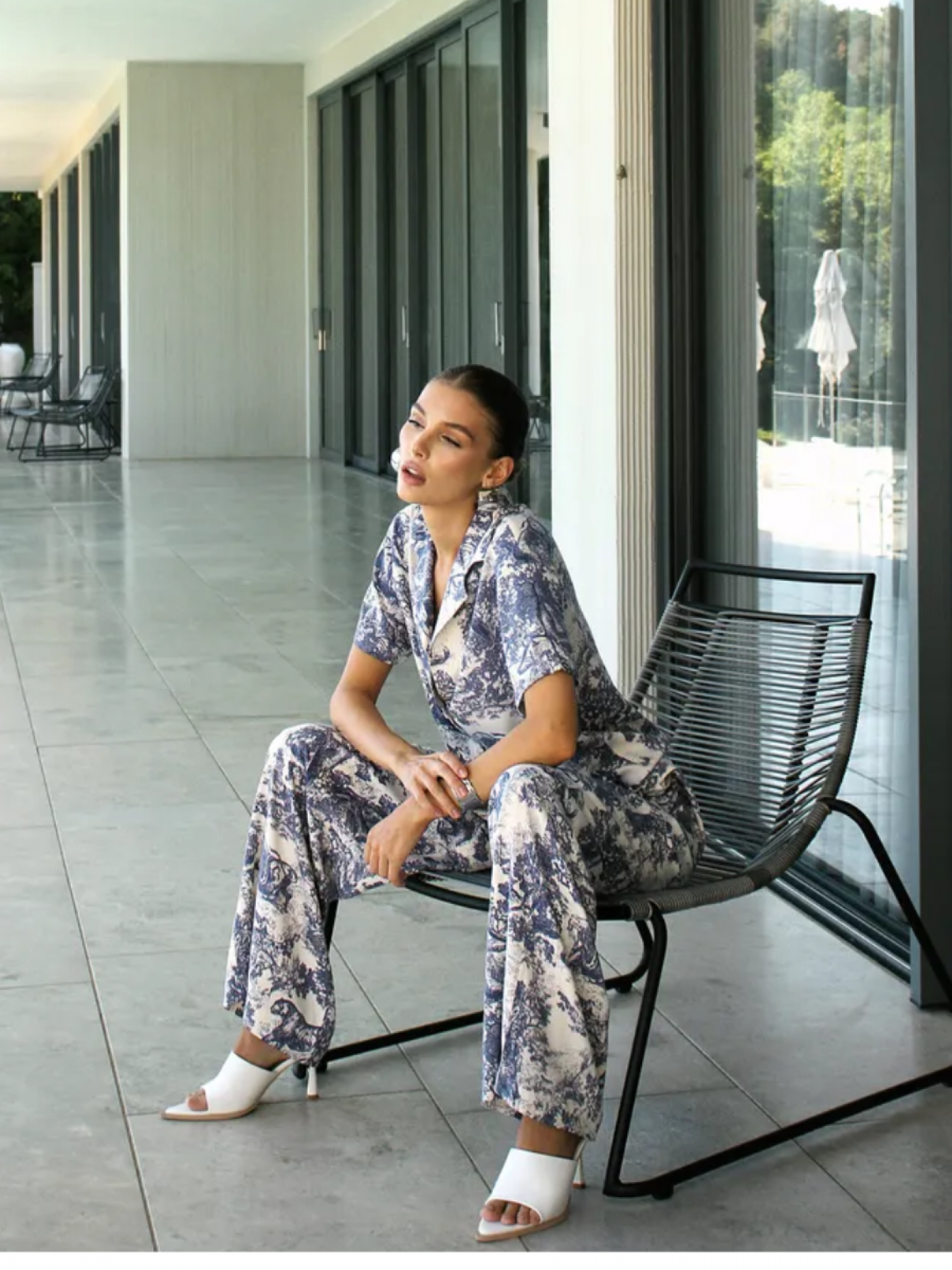 Откройте для себя идеальное сочетание комфорта и стиля с нашим новым шелковым костюмом! Легкий, дышащий шелк дарит непередаваемые ощущения в жаркие дни, а трендовый принт добавляет изюминку вашему образу. Этот костюм-двойка с рубашкой и широкими брюками идеально подходит как для повседневной носки, так и для особых случаев. Носите его вместе или комбинируйте элементы отдельно, создавая множество неповторимых луков.