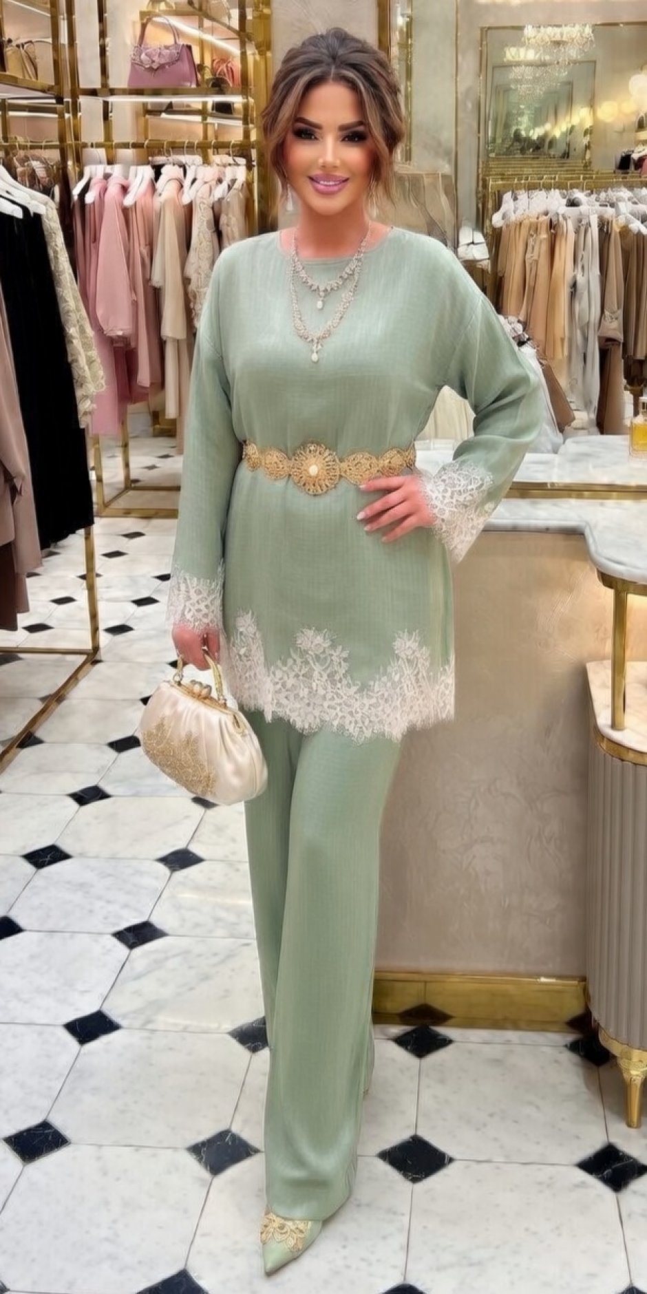 Этот костюм — воплощение эстетики «пижамного шика», которая остается на пике популярности. Сочетание благородного мерцания шелка и изысканного кружева создает образ, в котором вы будете выглядеть роскошно и в домашней обстановке, и на светском мероприятии.